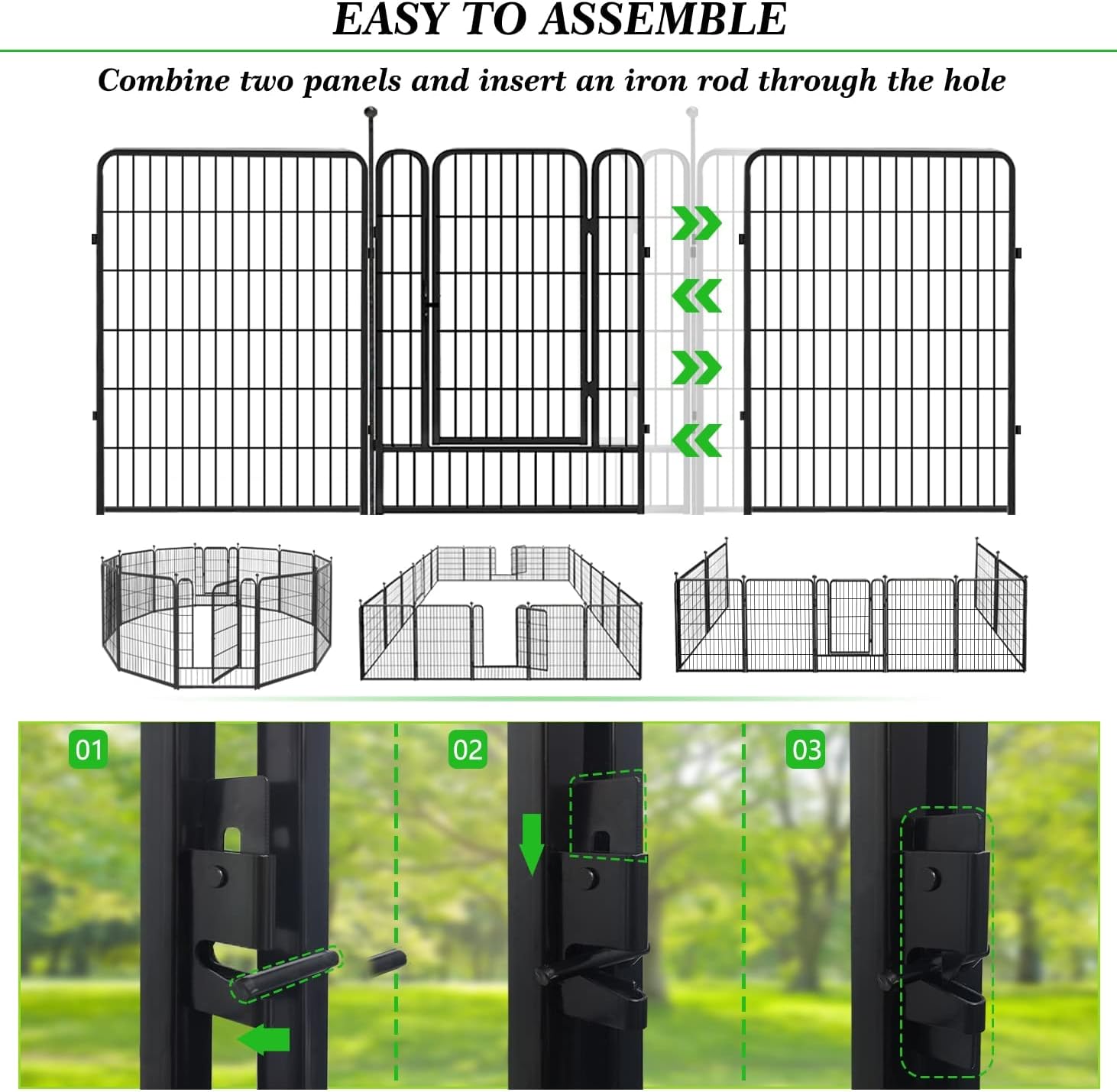 - Rust-proof & Sturdy Construction: Jhsomdr garden fence features double powder coated finish, rustproof, less maintenance, longer use. The metal fence panels are made of heavy duty iron and thick wire, no tearing, chewing, cracking and bending. The fence can work well for long time in bad weather