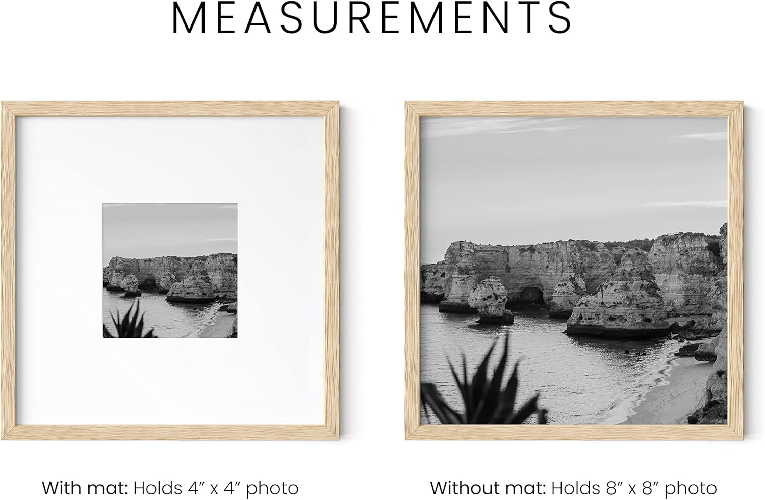 - SQUARE PICTURE FRAMES: The 8x8 frame with mat showcases the detail of the oak wood, with its unique grain patterns and rich hues. Our square matted frame will enhance your photographs and artwork, while the durable construction ensures your memories are exhibited for years to come. Embrace the seamless blend of natural materials and contemporary design with our 8x8 picture frames, bringing a touch of modernity to your cherished moments