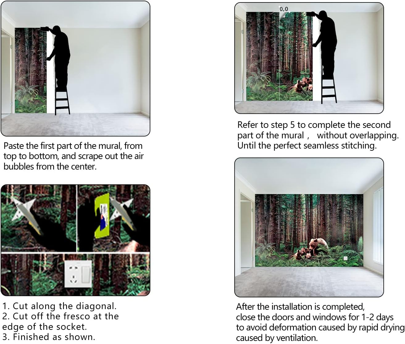 - It's easy to install: at the bottom of each mural we have a numbered sequence, You can refer to the instructions we provided and the main picture 6-7,just match the numbers and you'll be amazed!