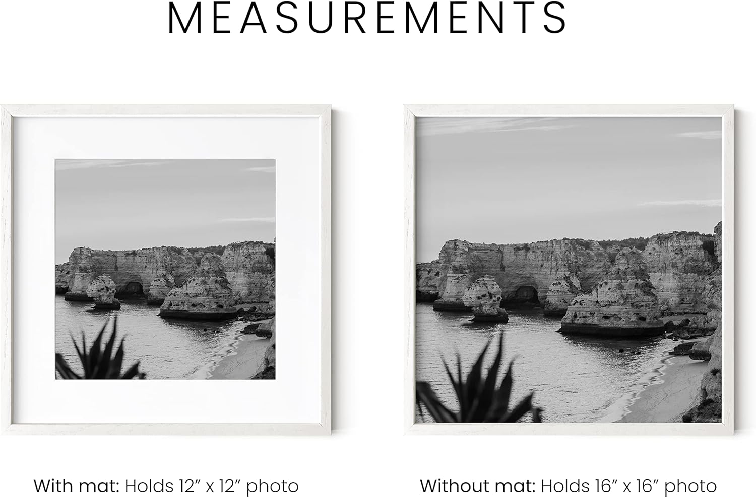 - SQUARE PICTURE FRAMES: Our 16 x 16 picture frame wood is meticulously constructed using natural oak wood, known for its timelessness and durability. The slim profile of the white frames 16x16 effortlessly blends into any interior decor, adding a contemporary touch. The clean lines and sleek design make the large square frame with mat a perfect choice for those seeking a stylish, understated display solution