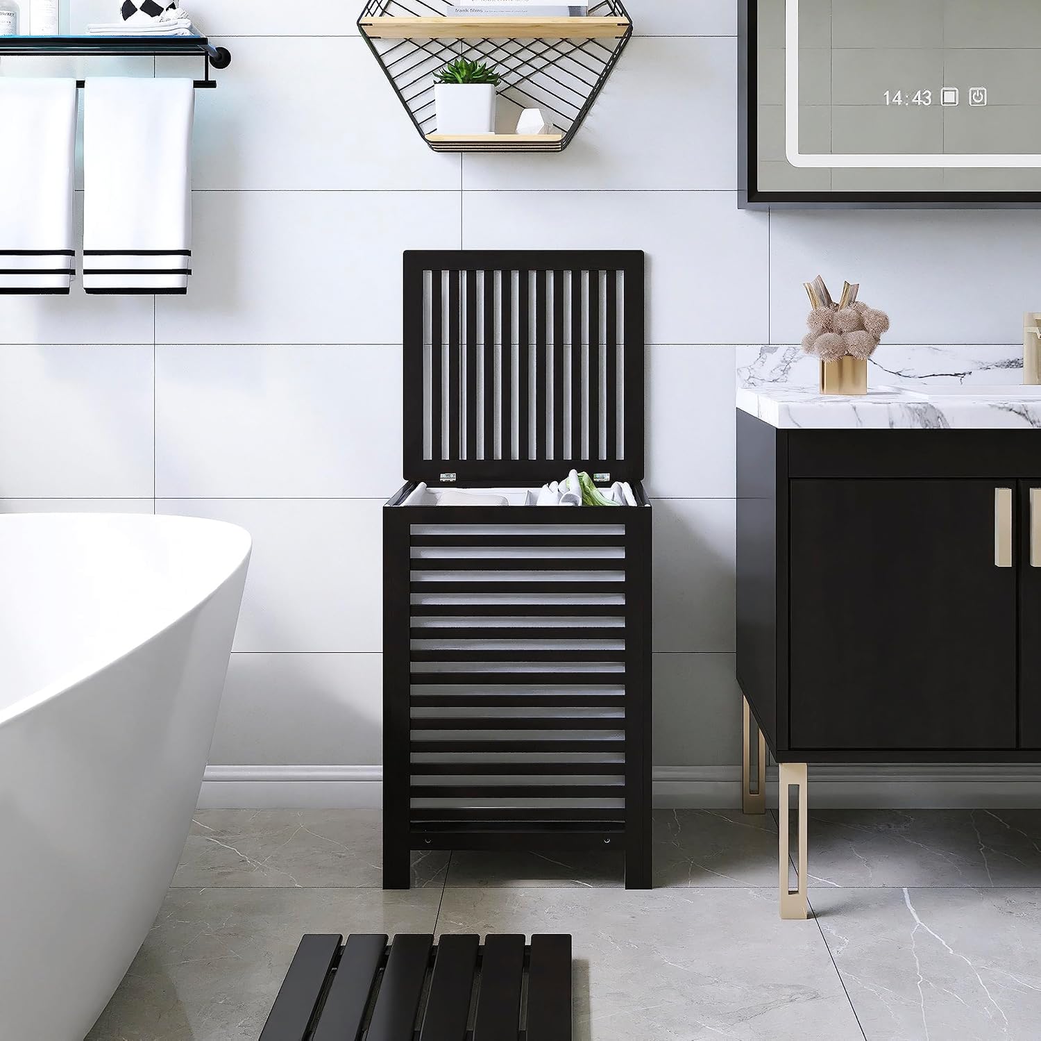 - ★ REMOVEABLE LINER BAG: The liner bag divided into two storage spaces is removable. When you need to do laundry, just open the lid, lift the handle of the inner bag, and carry it next to the washing machine. Very convenient for transportation from the laundry basket to the washing machine