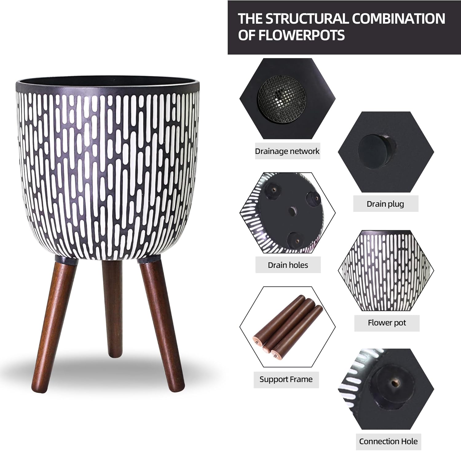 - Elevated & Drainage Design: This large planters for indoor plants is designed with legs that raise it off the ground, adding height and visual interest to your plant display; The bottom of the pot is designed with drainage holes. ensure your plants stay healthy.