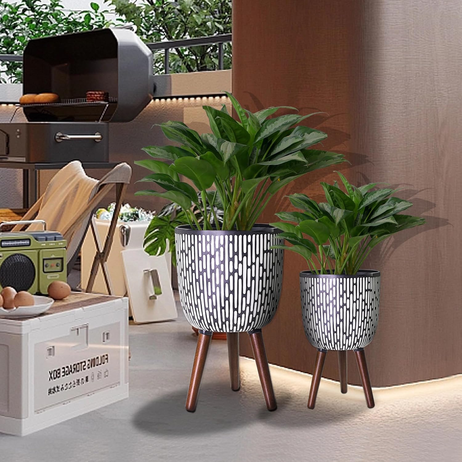 - Stylish Appearance: With a sleek and bohemian print design, this flower pot with legs is the perfect addition to any home decor. Whether you want to adorn your garden, patio, balcony, or even interior spaces, the planter set adapts to your preferences, creating captivating focal points that enhance the overall ambiance.