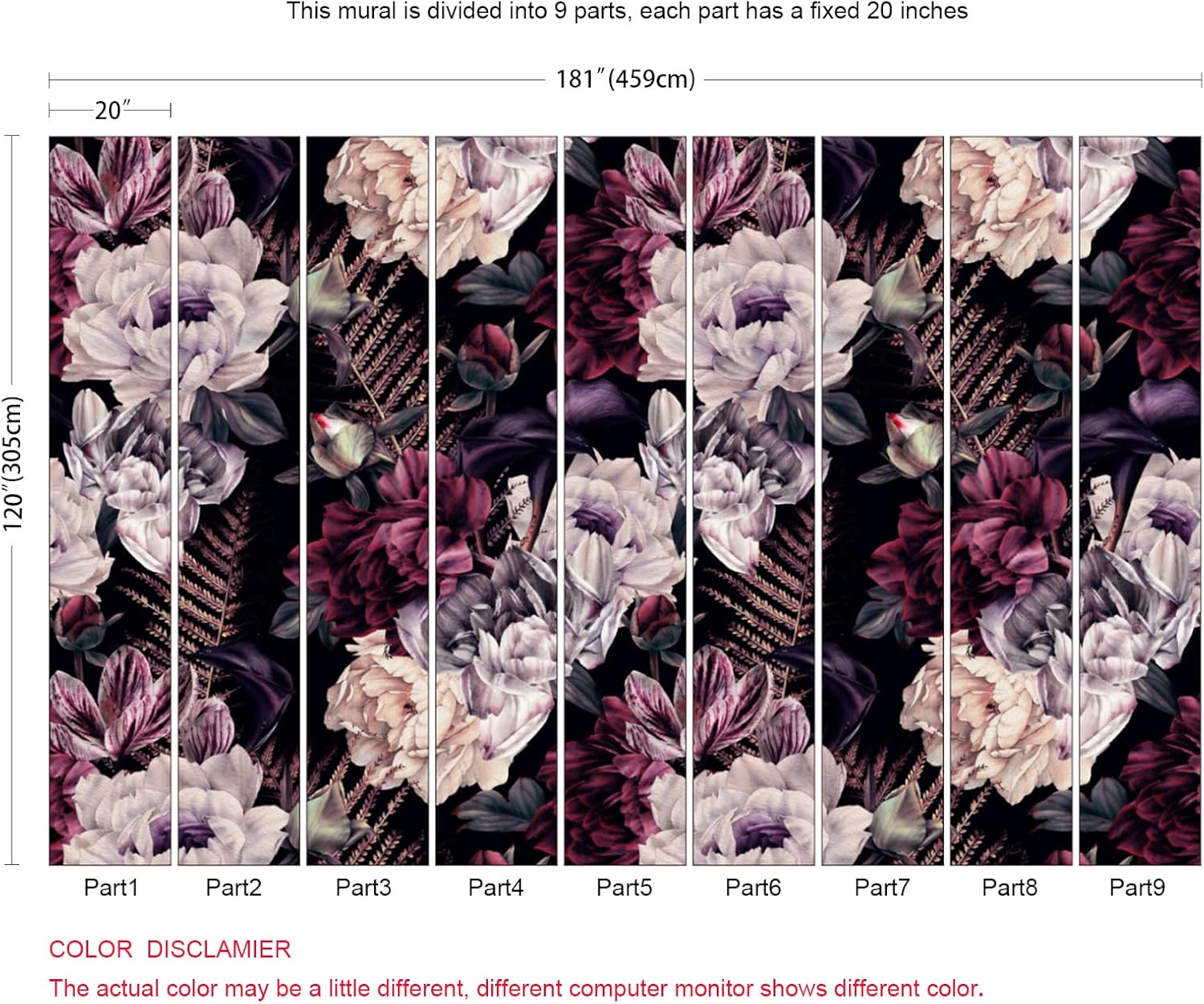 - Dimension:Approx. 181"x120" (Width x Height). This mural wallpaper is cut into 9 strips for easy installation.