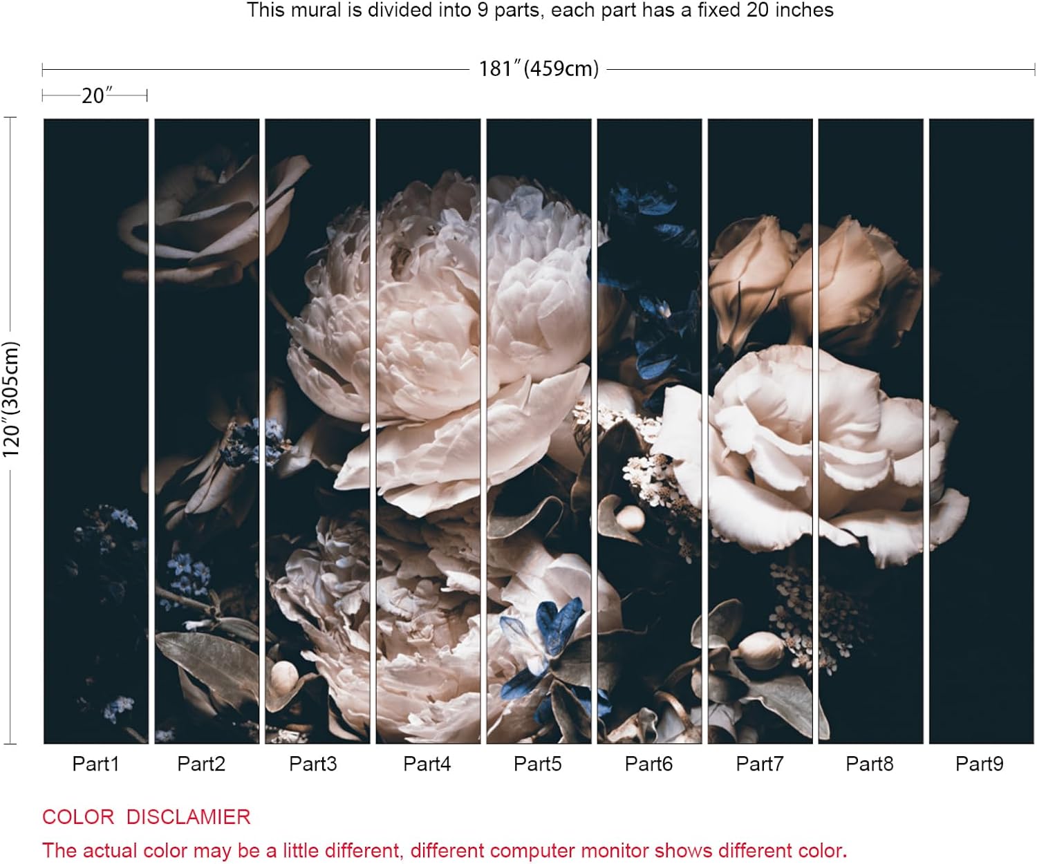 - Dimension:Approx. 181"x120" (Width x Height). This mural wallpaper is cut into 9 strips for easy installation.