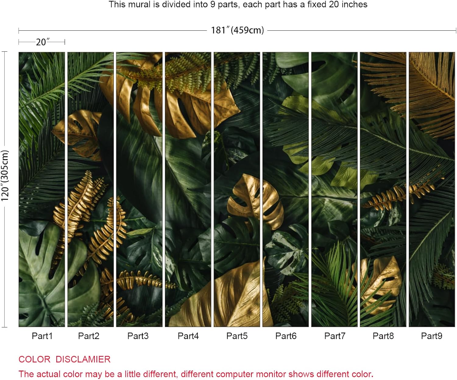 - Dimension:Approx. 181"x120" (Width x Height). This mural wallpaper is cut into 9 strips for easy installation.