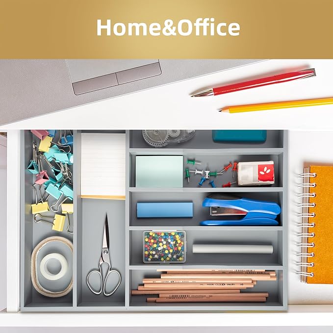 - 【Multifunctional Management】Our multi-purpose cutlery organizer is not only suitable for storing silverware, but also suitable for storing disposable tableware, sundries, cosmetics, hair accessories, repair tools, art sets, stationery. With this silverware organizer for drawer, drawers in the kitchen, bathroom, dresser, room, office can be efficiently organized. This is the best home gifts, everyone would like to have such practical gifts for drawer organizer home.