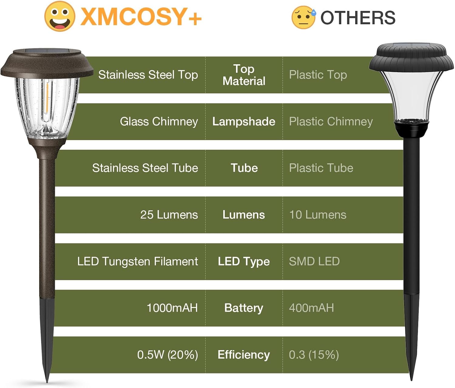 XMCOSY+ Solar Lights Outdoor 10/25 LM LED with 2 Lighting Modes, Solar Garden Lights Glass and Metal, IP65 Waterproof Solar Powered for Yard Pathway Walkway Driveway Patio (6 Pack, Warm White)