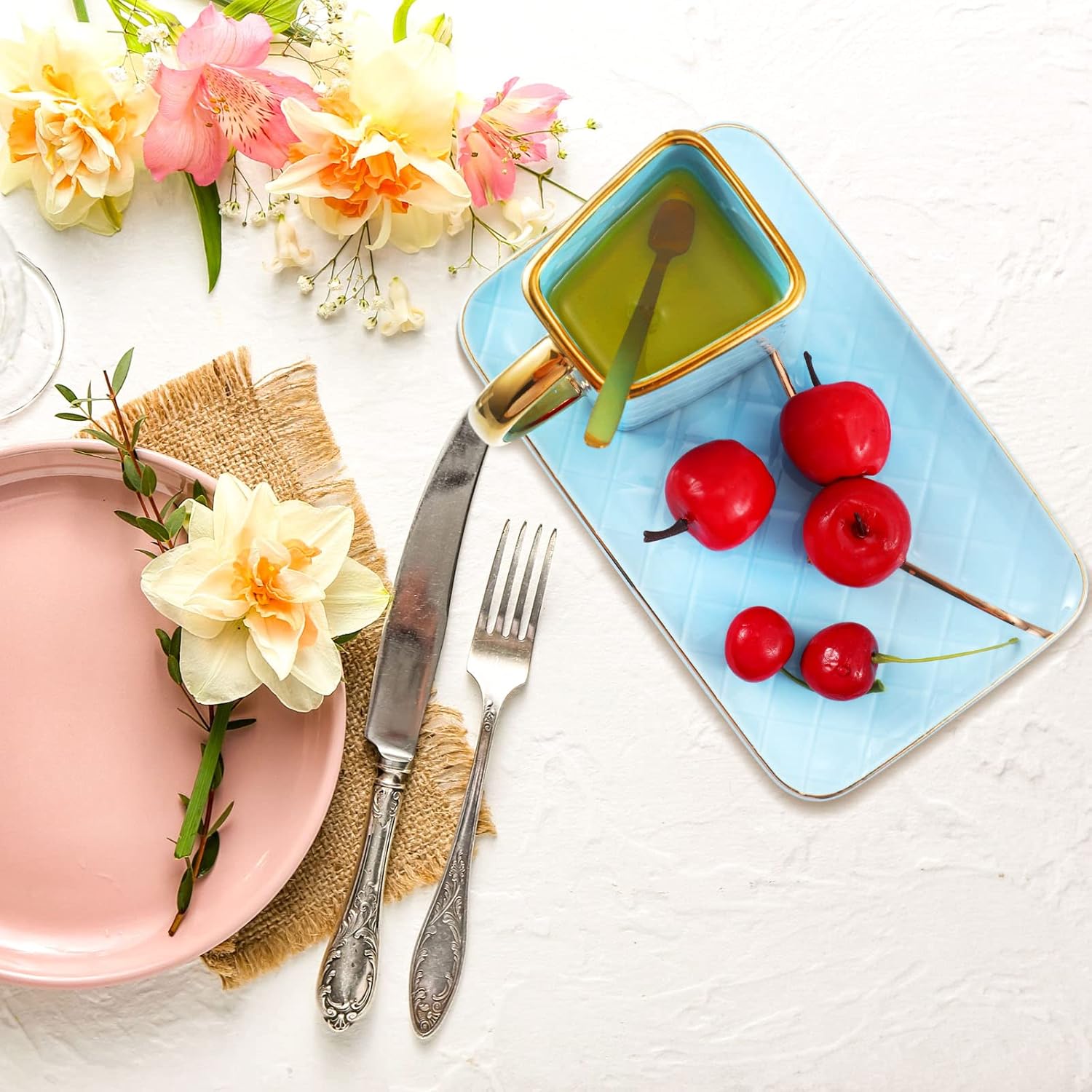 - Attractive and Elegant: the ceramic aesthetic coffee mug with saucer is characterized by handbag shapes and hand painted golden edges, and the color combination of blue and gold makes it more beautiful and graceful, which can bring both decorative and practical functions
