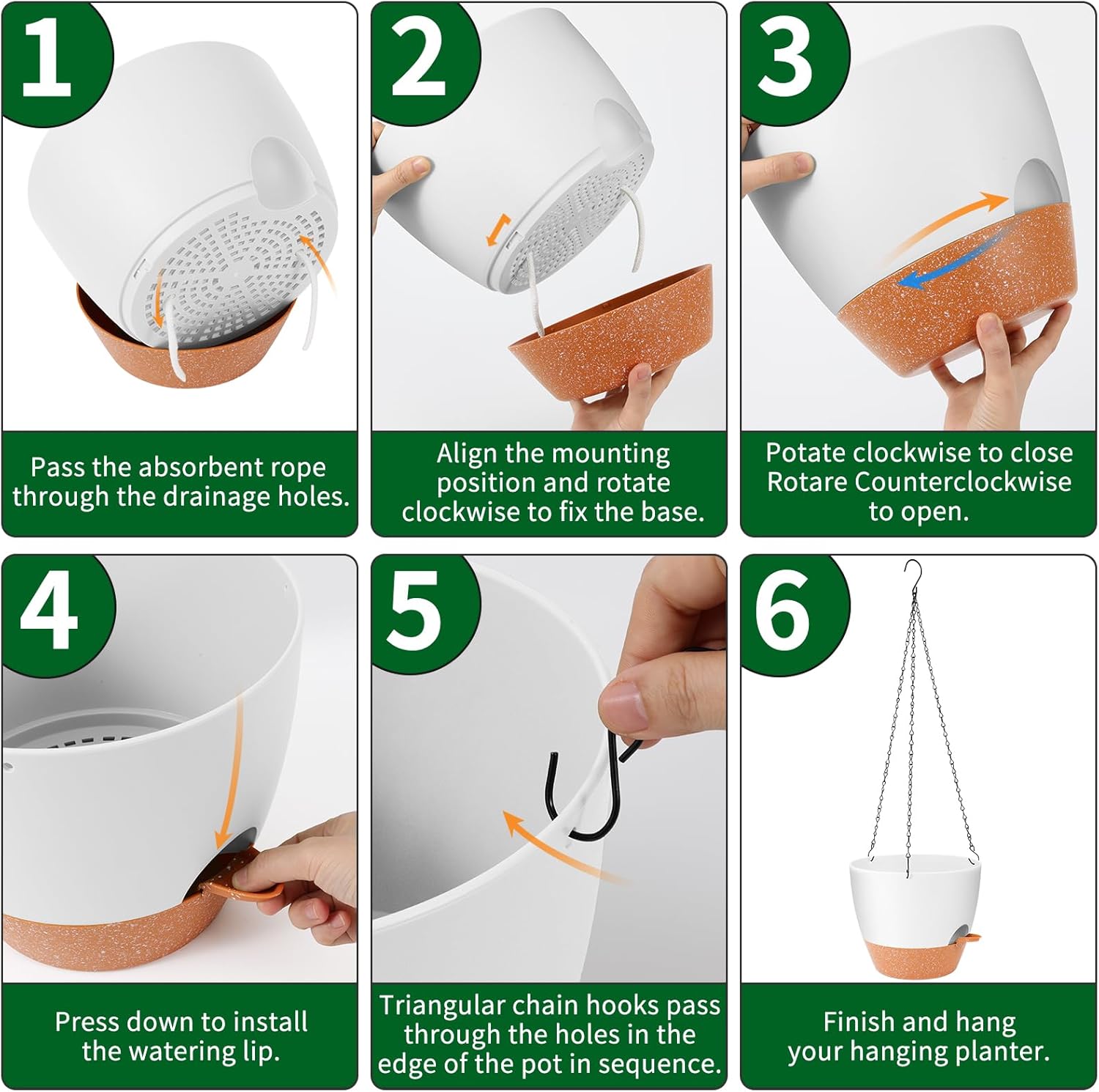 GARDIFE Hanging Planter, 10 inch Hanging planters for Indoor. Outdoor Plants, Self Watering Plant Pot, 2 Pack Large self Watering Hanging Planter, White
