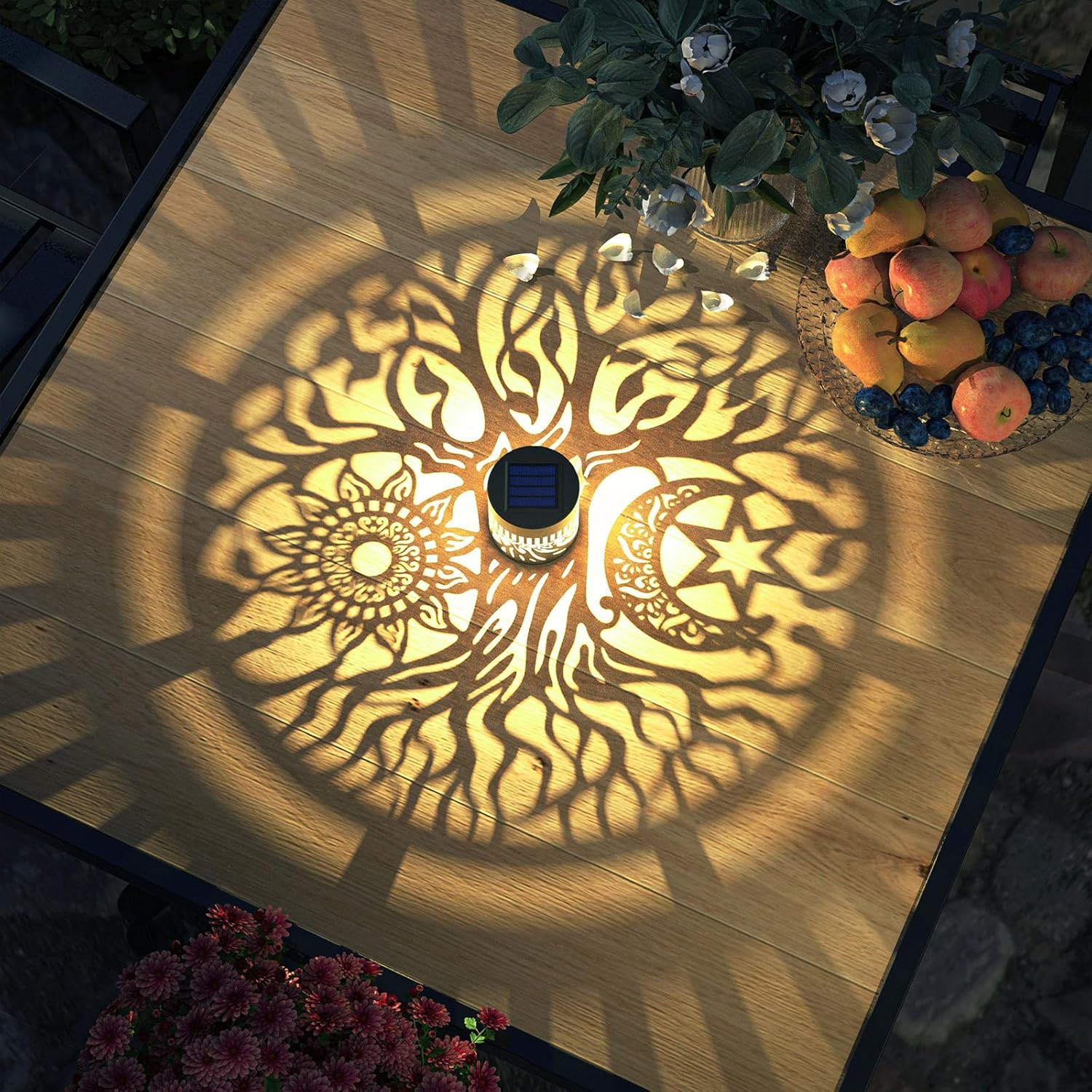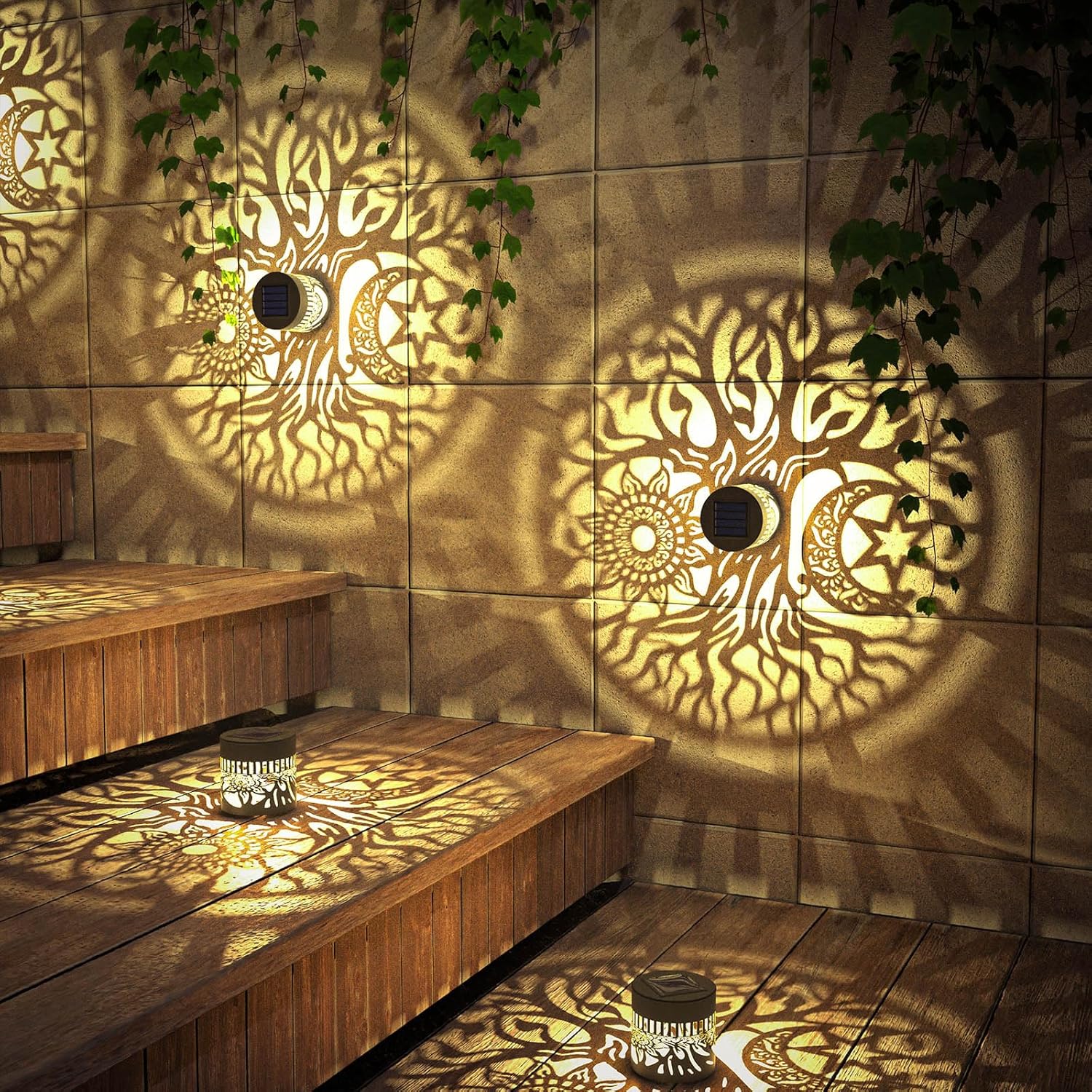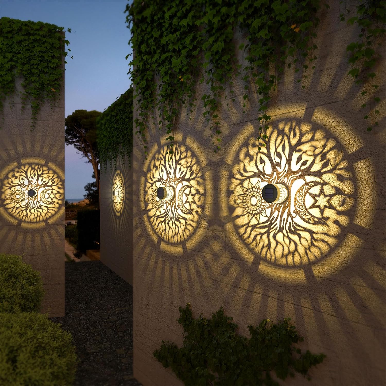 4 Pack Solar Fence Lights Metal Solar Powered Outdoor Wall Deck Step Lights Tree Theme Waterproof Fence Light for Garden Post Patio Backyard Yard Decor (Tree, 4 Pack)