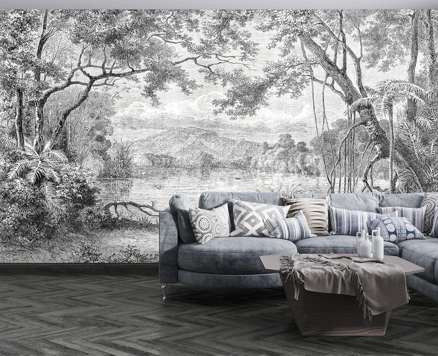 Black and White Tropical Rainforest Wall Mural Wallpaper for Bedroom 178" x 117"