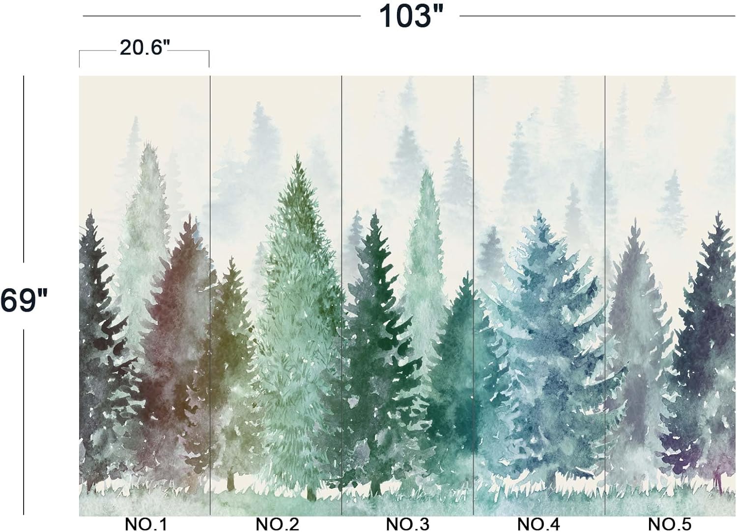 - The size of the wallpaper is 103" wide x 69" high and divided into 5 panels.