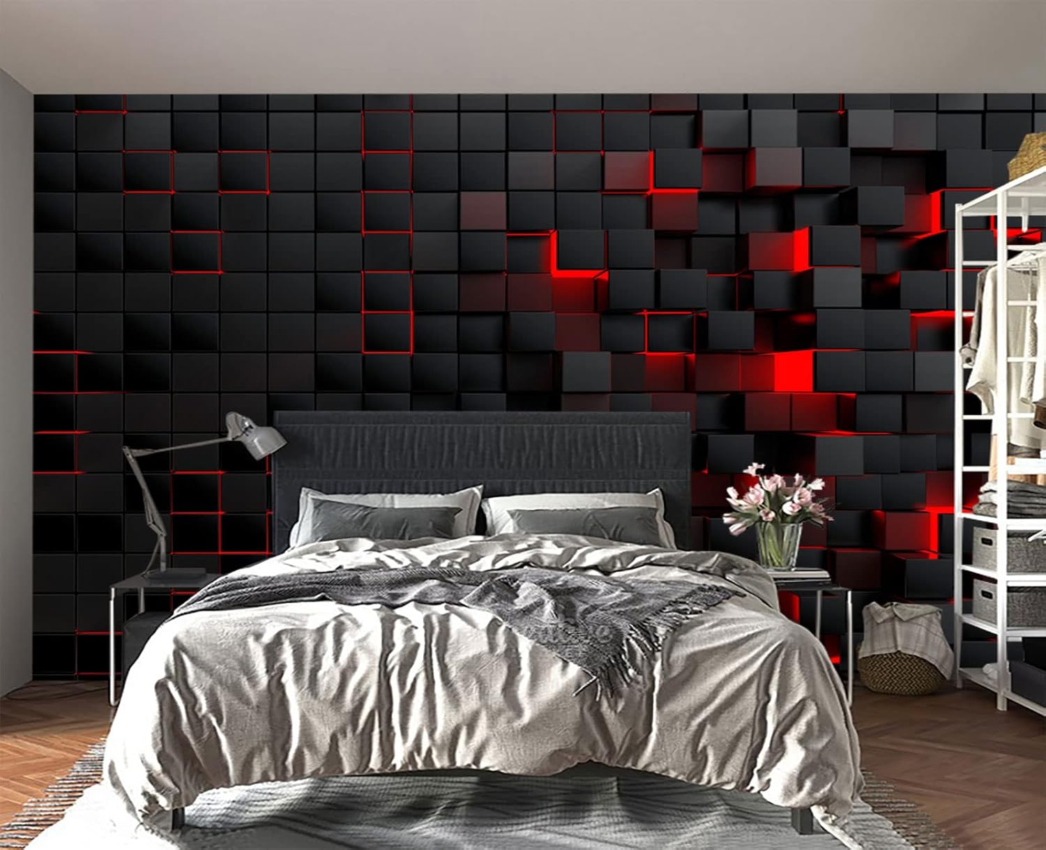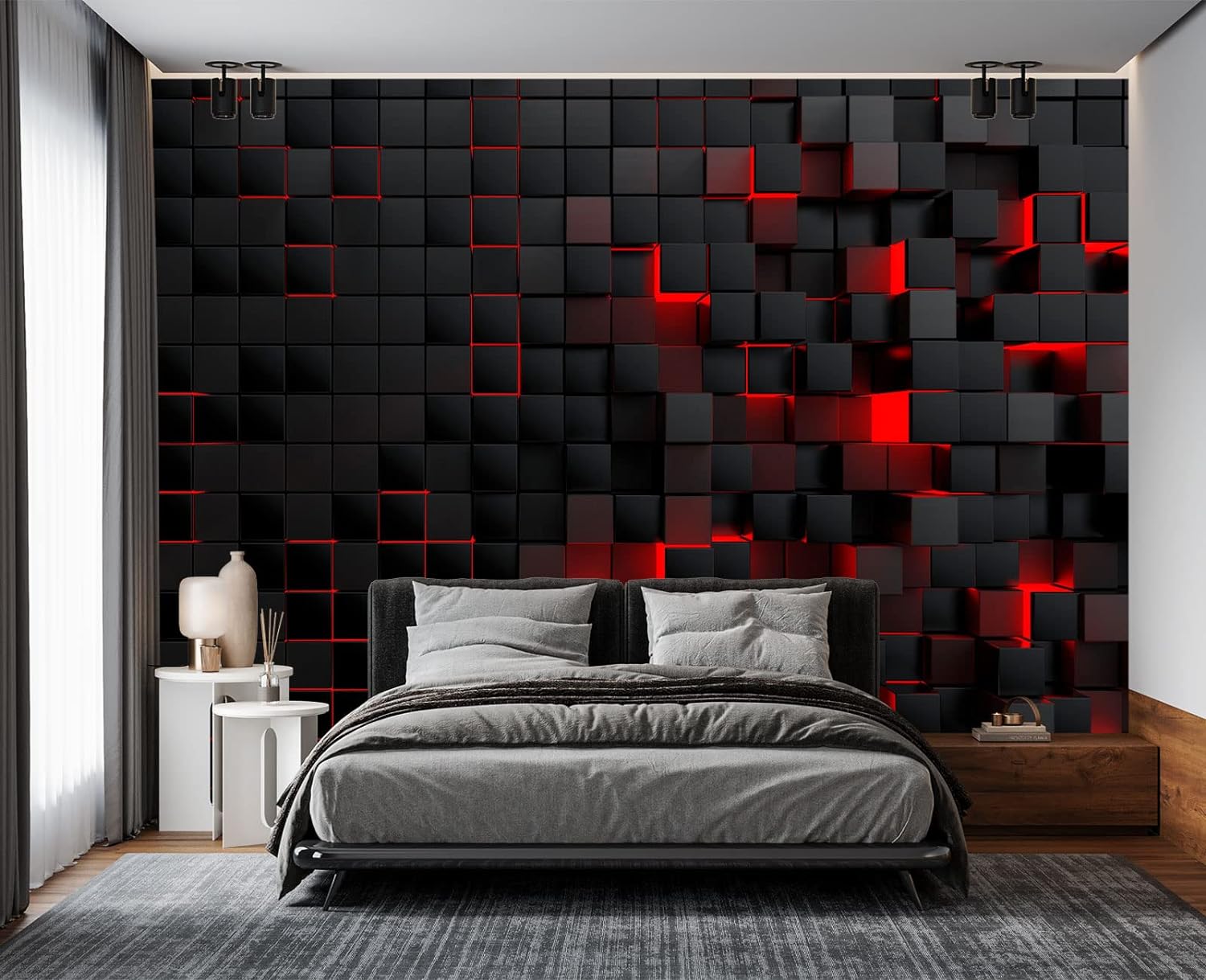 Tech Red Blocks Wall Mural Wallpaper for Bedroom 137" x 100"