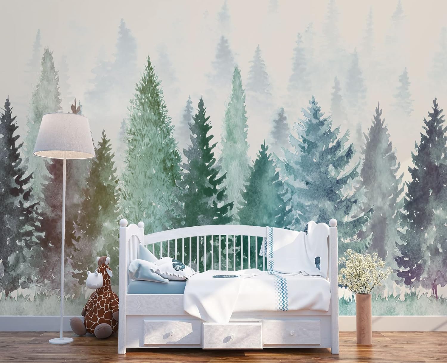 Colorful Watercolor Forests Children's Nursery Wall Mural Wallpaper 178" x 117"