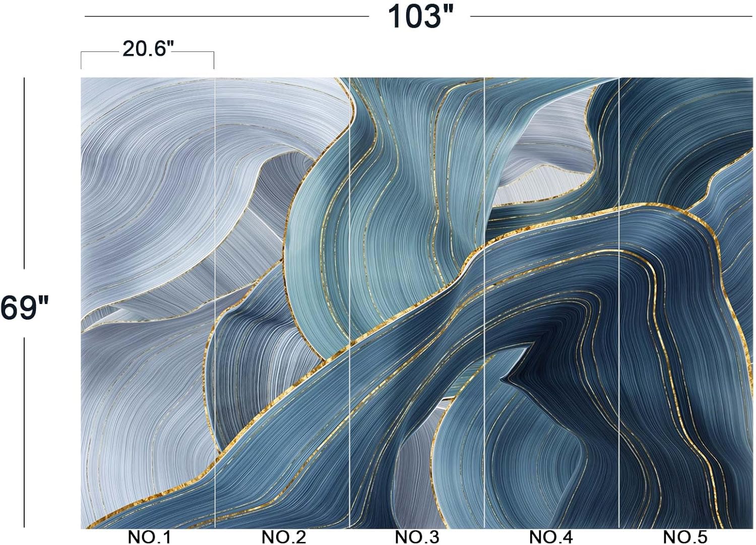 - The size of the wallpaper is 103" wide x 69" high and divided into 5 panels.