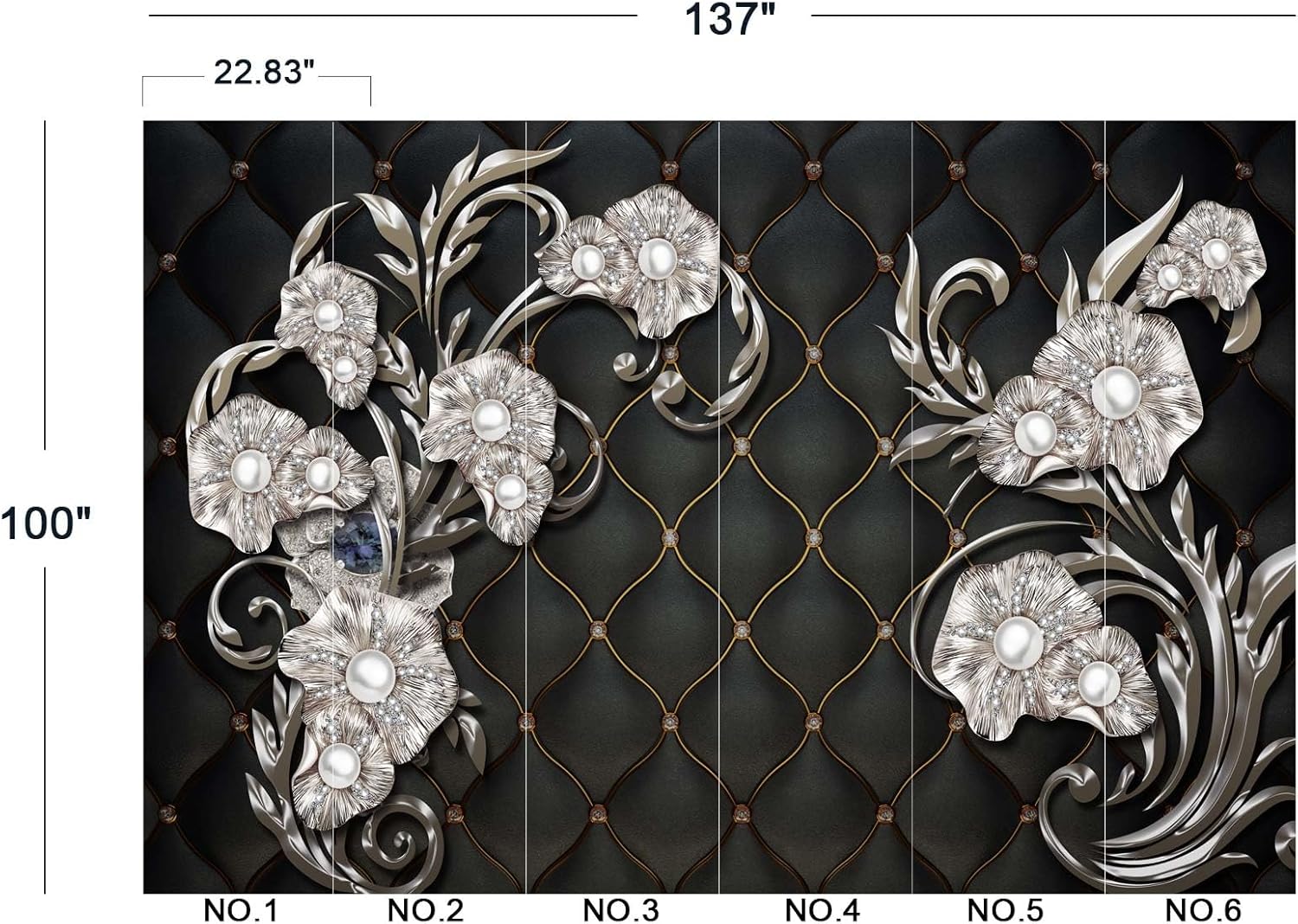 Black Hard Wrapped Pearl Embossed Flowers Wall Mural Wallpaper for Bedroom 137" x 100"