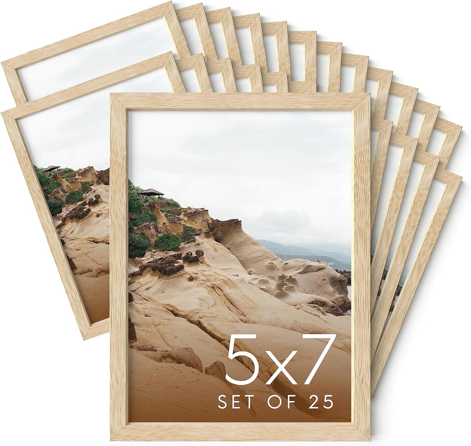 Haus and Hues 5x7 Natural Oak Wood Photo Frame Set of 25 - Mini Picture Frames Bulk Gallery Set - Premium Bulk Picture Frames 5x7 for Stylish Photo Gallery Wall Frame Set - Ideal for Home & Office