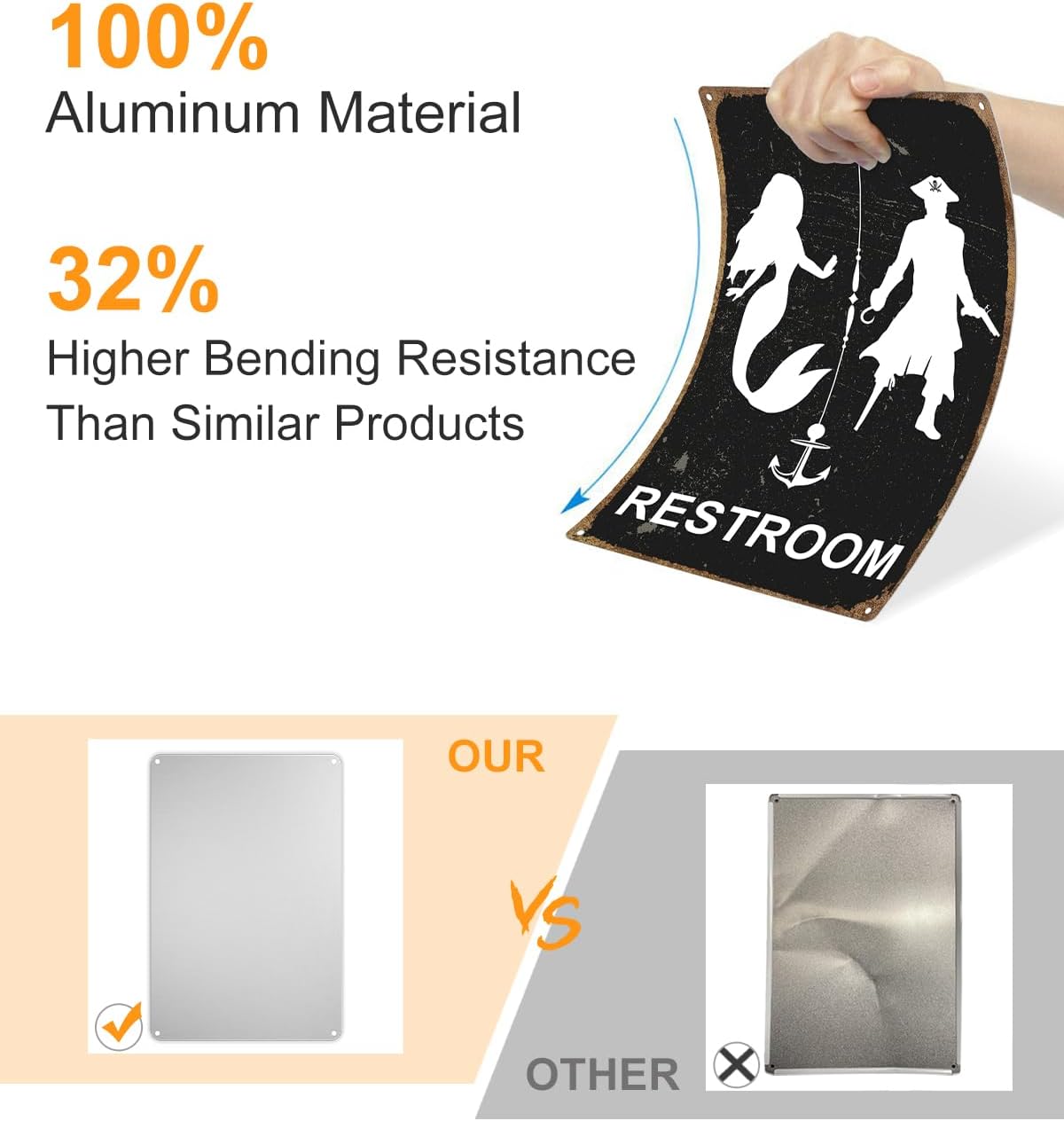 ALKB Nautical Themed Vintage Restroom Door Sign Fun Mermaid and Pirate Sign Suitable for Ocean, Beach, Ship Themed Wall Decor 8x12 Inch