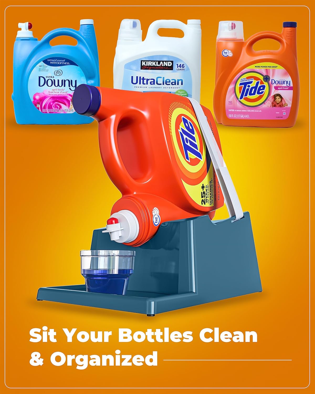 - [All-in-One Laundry Detergent Cup Holder Stand]: This smart laundry soap dispenser for liquid detergent is designed for total convenience. This laundry organizer for detergent gives you a place for your bottle and cup in one tidy space. It even works as a fabric softener dispenser, making laundry day smoother than ever. (Laundry Soap, Cup, and Bottles NOT Included)