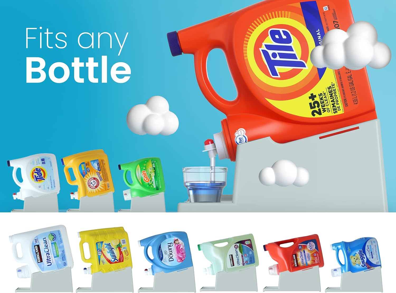 - [Versatile Fit:] The liquid laundry detergent holder station's optimal size (7.9"L x 12.2"W x 5.5"H) accommodates various bottle sizes, providing a perfect fit for most detergent containers without taking up too much space. (Laundry Soap, Cup, and Bottles NOT Included)