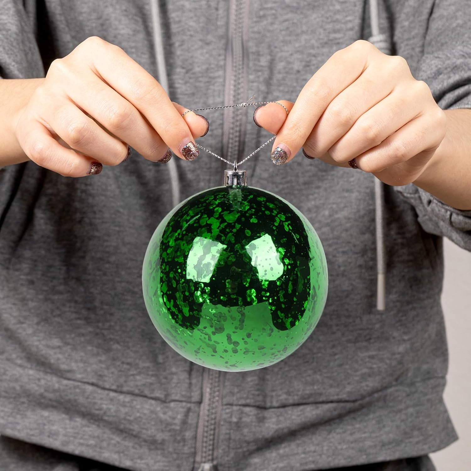 XmasExp Large Christmas Ball Ornaments,4pcs Green Giant Shatterproof Plastic Hanging Mercury Xmas Ball Decorations Christmas Tree Ornaments (Green, 4")