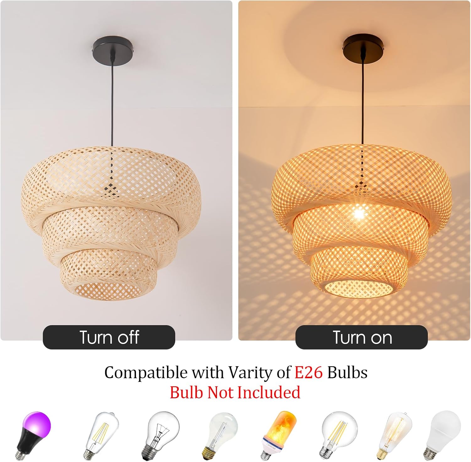 - 【Excellent Design】Bamboo/wood/rattan, the pendants are made of natural materials. The lights are hand woven with natural bamboo by superb skills bamboo artists. Decorated with classic tropical style elements, creates a wonderfully new look
