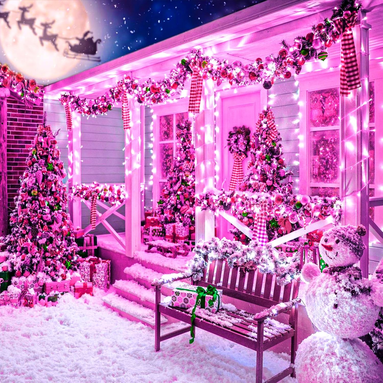 - Waterproof Fairy Lights Plug in: The pink Christmas lights design with IP44 outdoor waterproof, can withstand wind, snow, rain and extreme weather. String lights are equipped with a UL certified 29V low-voltage plug ensures the safety. It's safe for family with kids or pets!