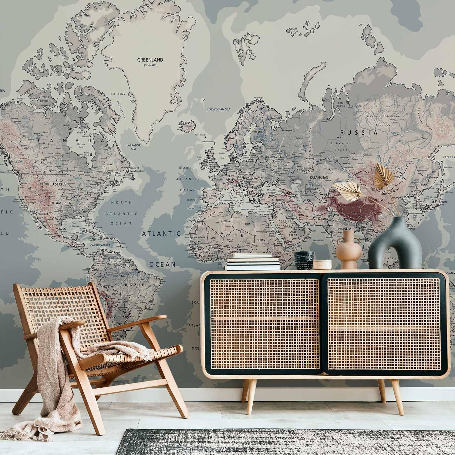 artgeist Premium Wall Mural World Map 177x124 in - XXL Non-Woven Wallpaper Fleece Wall Decor Photo Print Picture Image Design Home Map of The World k-A-0061-a-c