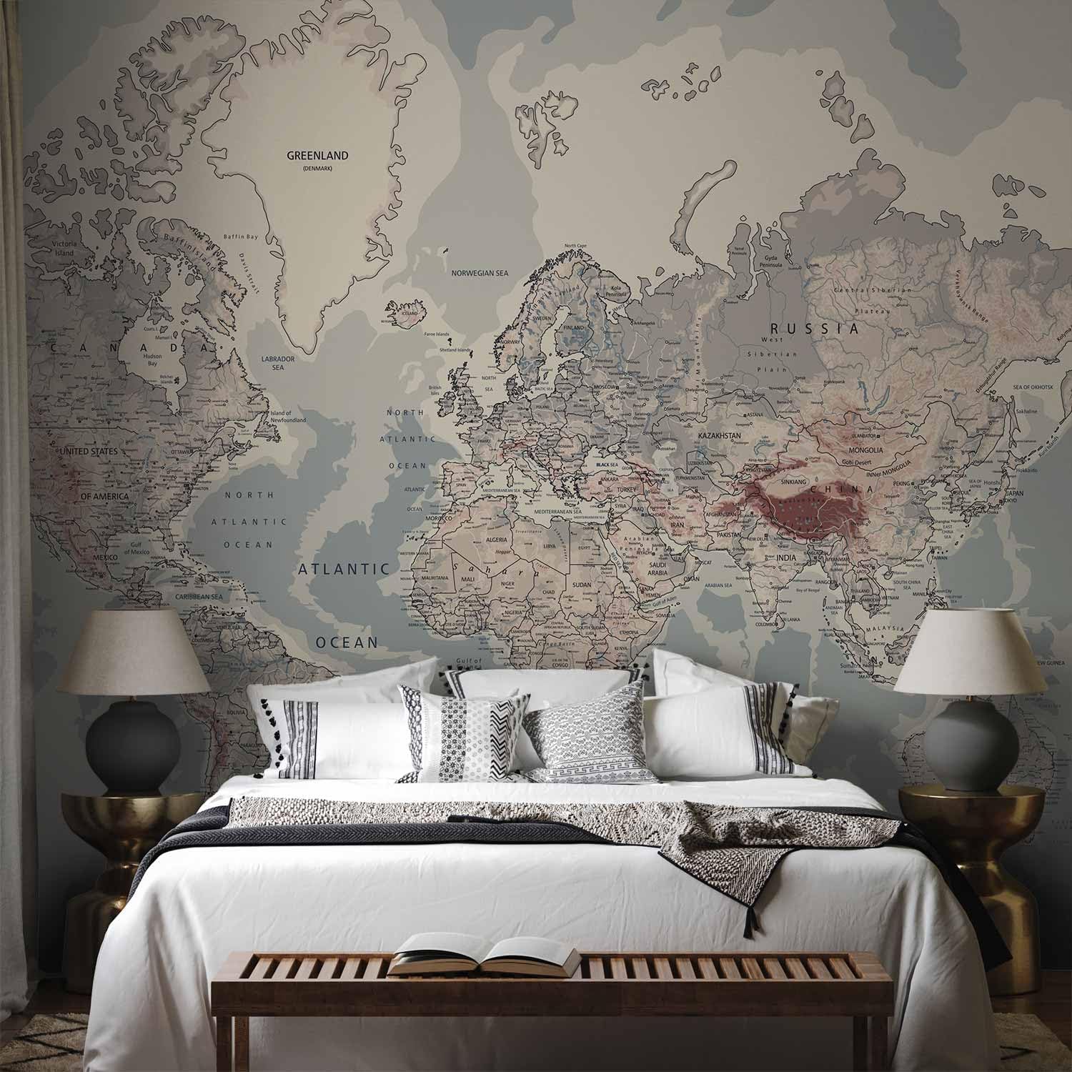 artgeist Premium Wall Mural World Map 79x55 in - XXL Non-Woven Wallpaper Fleece Wall Decor Photo Print Picture Image Design Home Map of The World k-A-0061-a-c