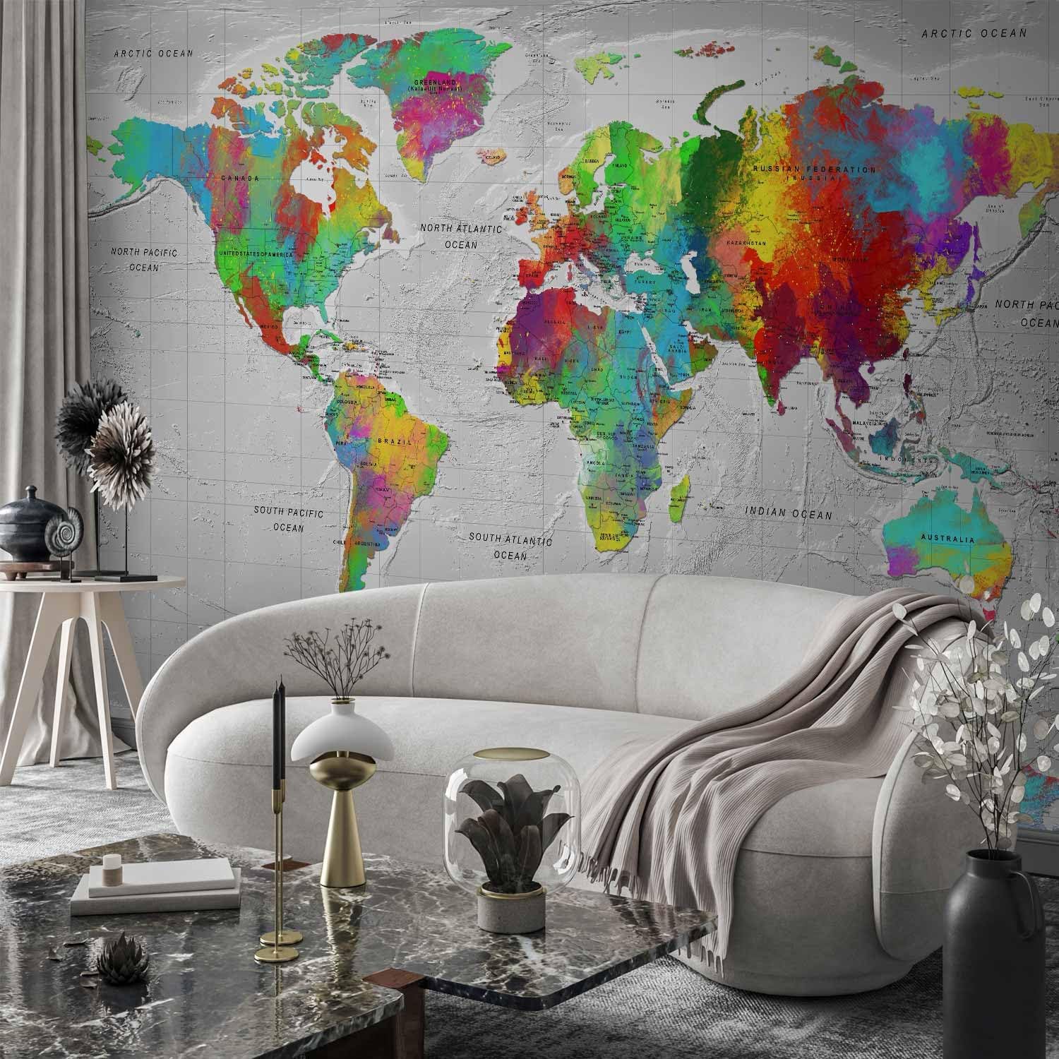 artgeist Premium Wall Mural World Map 177x124 in - XXL Non-Woven Wallpaper Fleece Wall Decor Photo Print Picture Image Design Home Map of The World k-A-0128-a-a