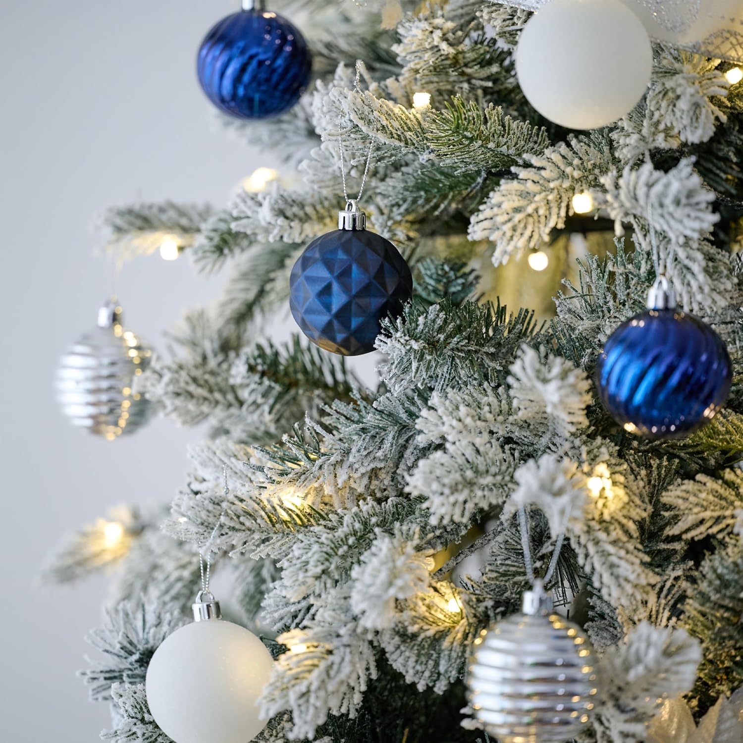 Valery Madelyn Christmas Ornaments Tree Decorations Set for Fall Halloween, 24ct Navy Blue Silver Shatterproof Ball Ornaments, 2.36" Hanging Ornament Bulk for Xmas Holiday Party Decor