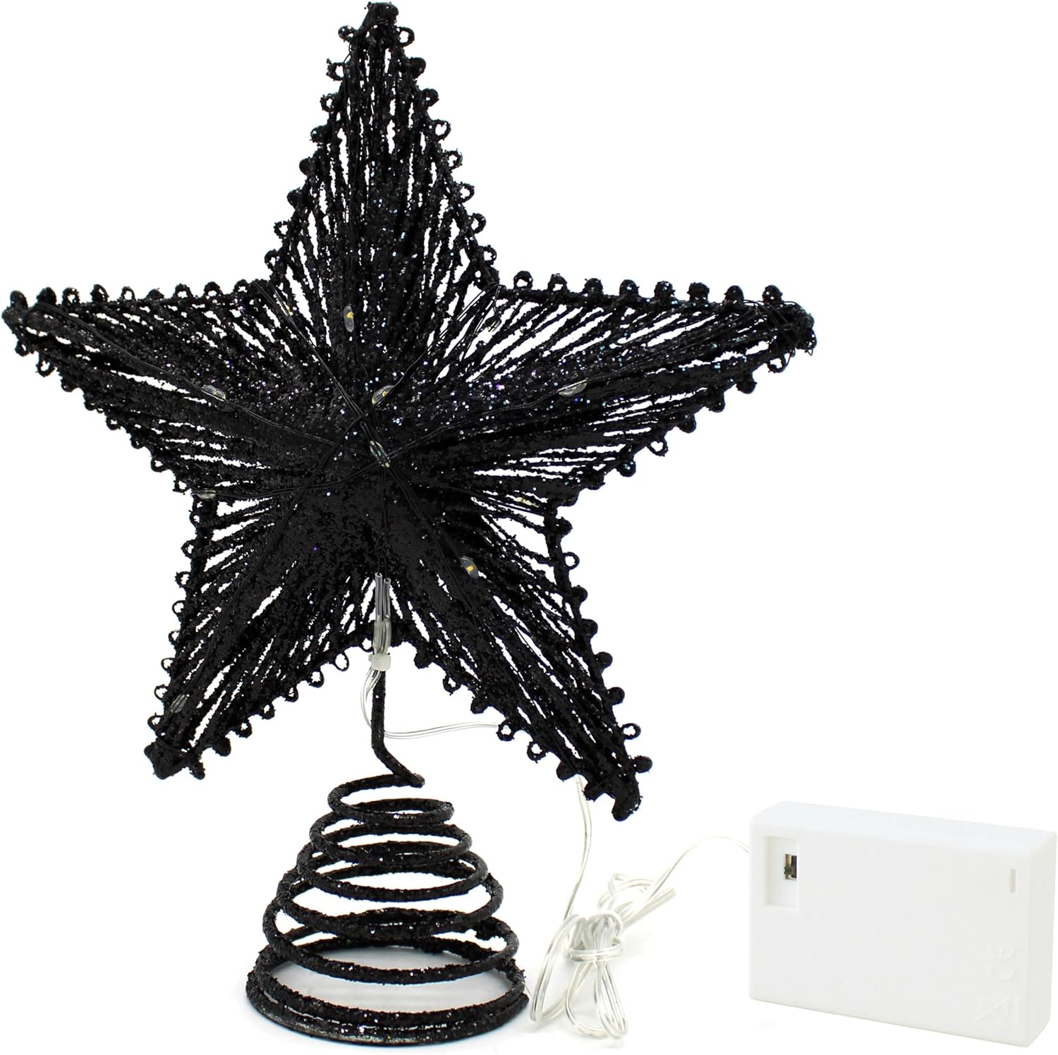 CVHOMEDECO. Tree Top Star with Warm White LED Lights and Timer for Christmas Ornaments and Holiday Seasonal Décor, 8-Inch (Black)