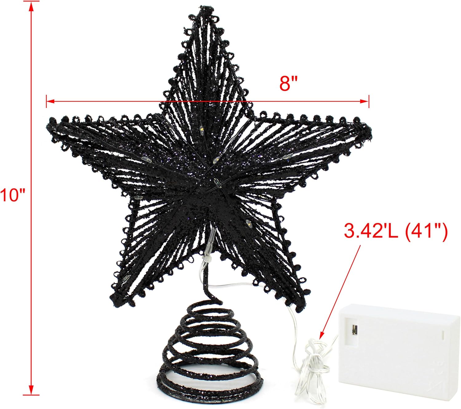 - Measures is 8" X 2-3/4" X 10"H, the wire is 3.42'L (41"), 3D star, solid batteries box with flexible switch, New Upgrades design