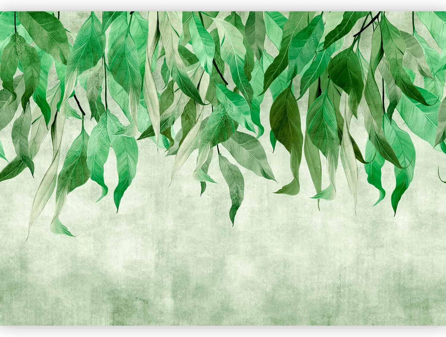artgeist Premium Wall Mural Hanging Leaves 138x101 in - Non-Woven Wallpaper Fleece Wall Decor Photo Print Picture Image Design Nature Botanical Concrete Green Like Painted b-C-10146-a-a