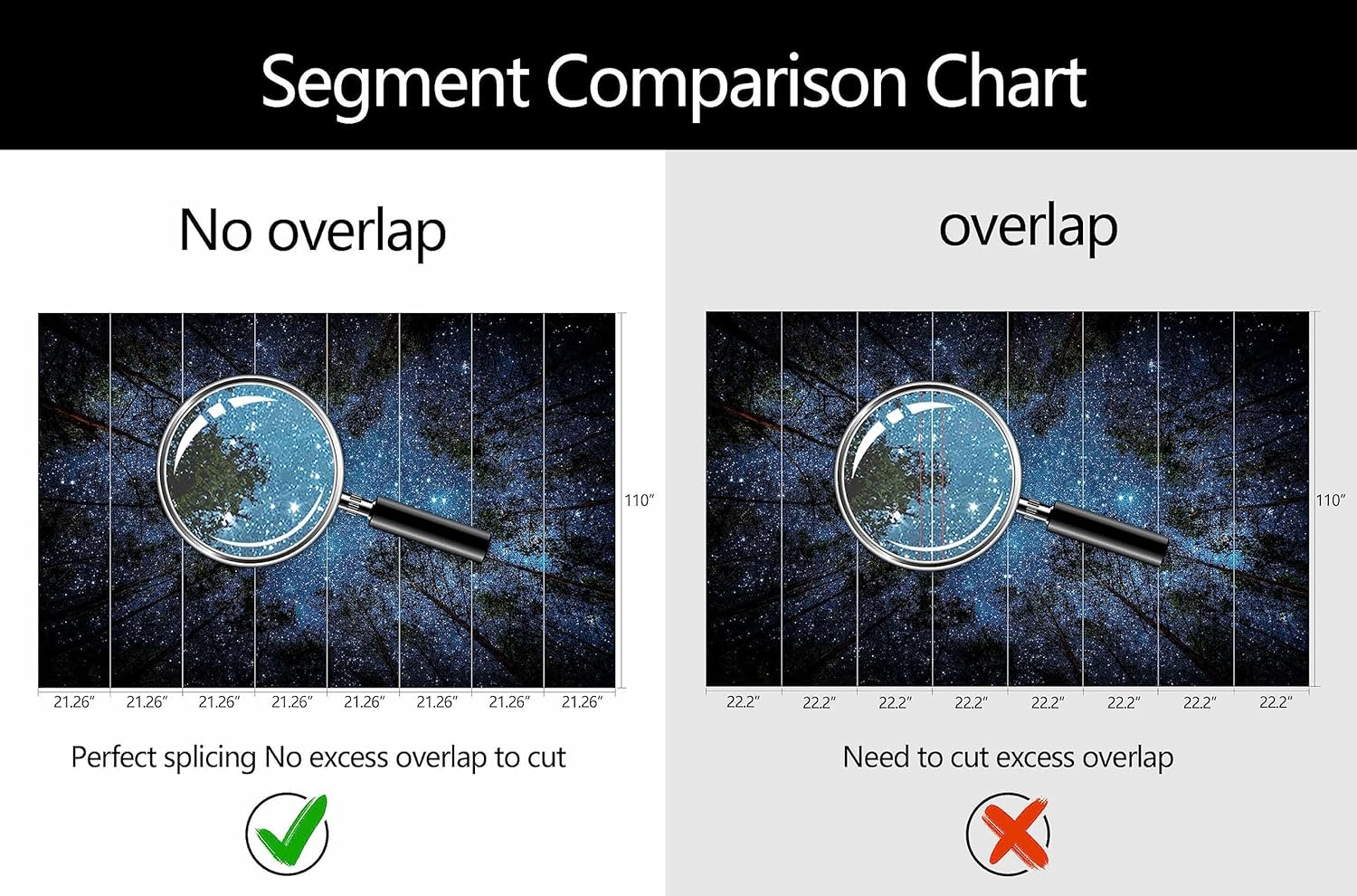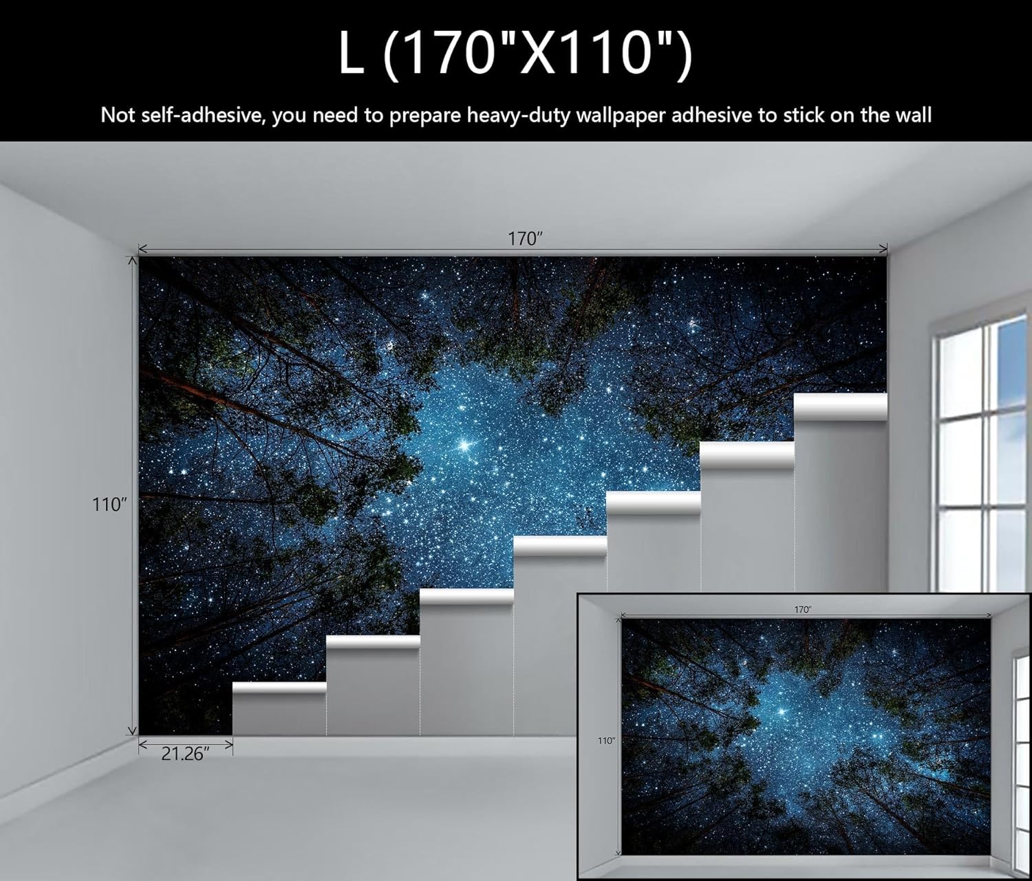 - Mural Size: The total size of this mural wallpaper is 170" x 110" / 432CM x 280CM (W x H), cut into 8 pieces, each measuring 21.26" x 110", for easy installation.