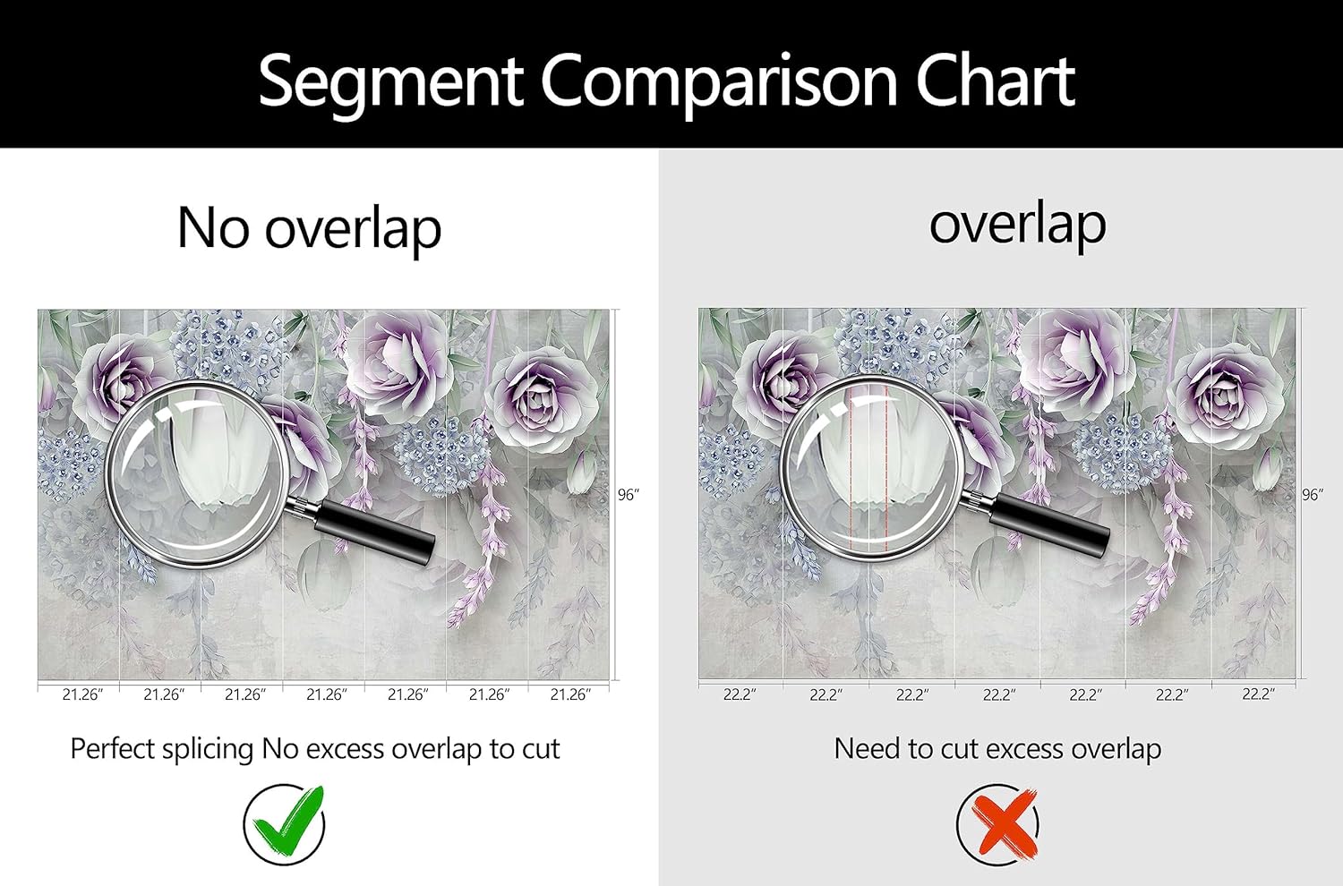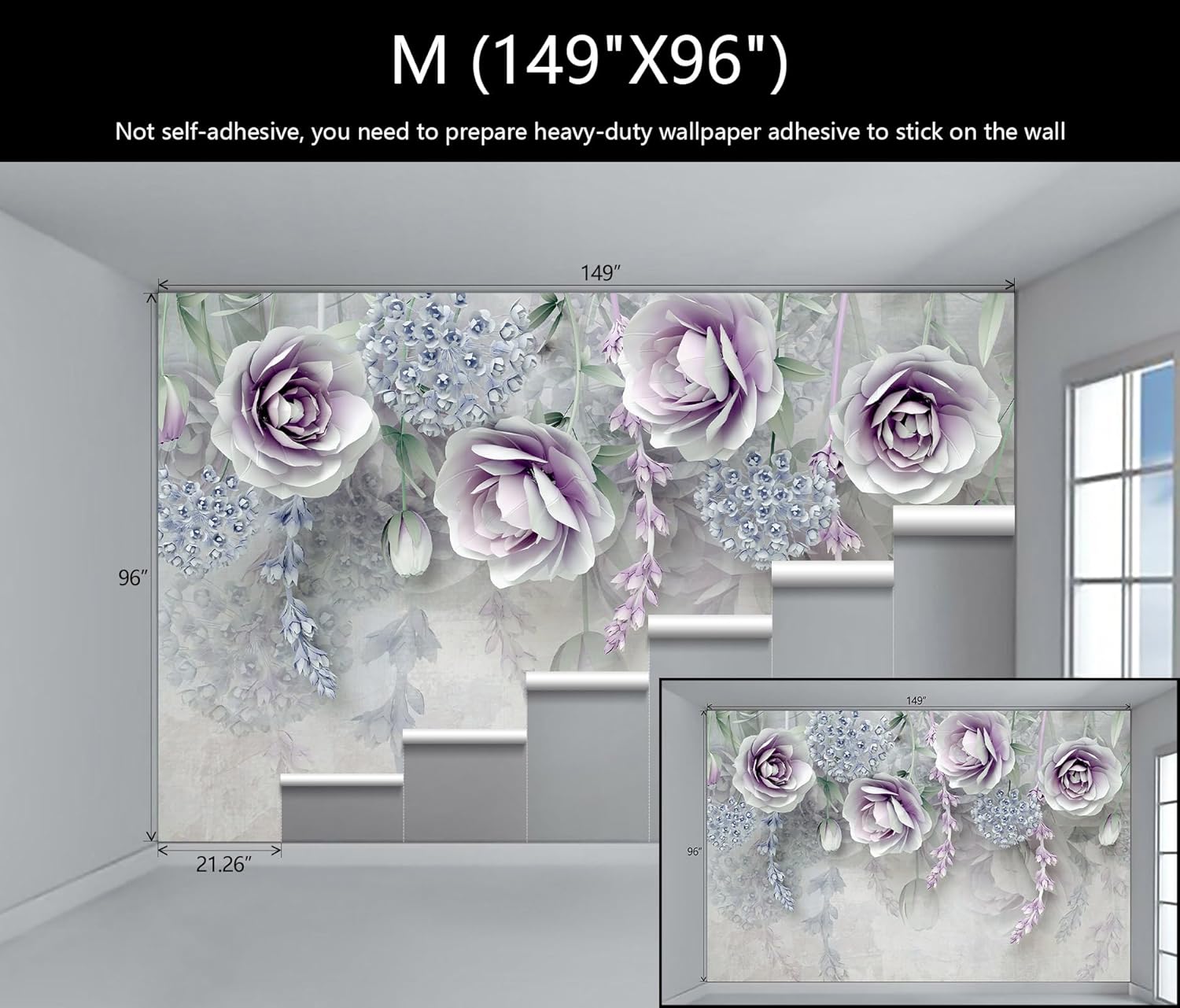 - Mural Size: The total size of this mural wallpaper is 149" x 96" / 378CM x 244CM (W x H), cut into 7 pieces, each measuring 21.26" x 96", for easy installation.