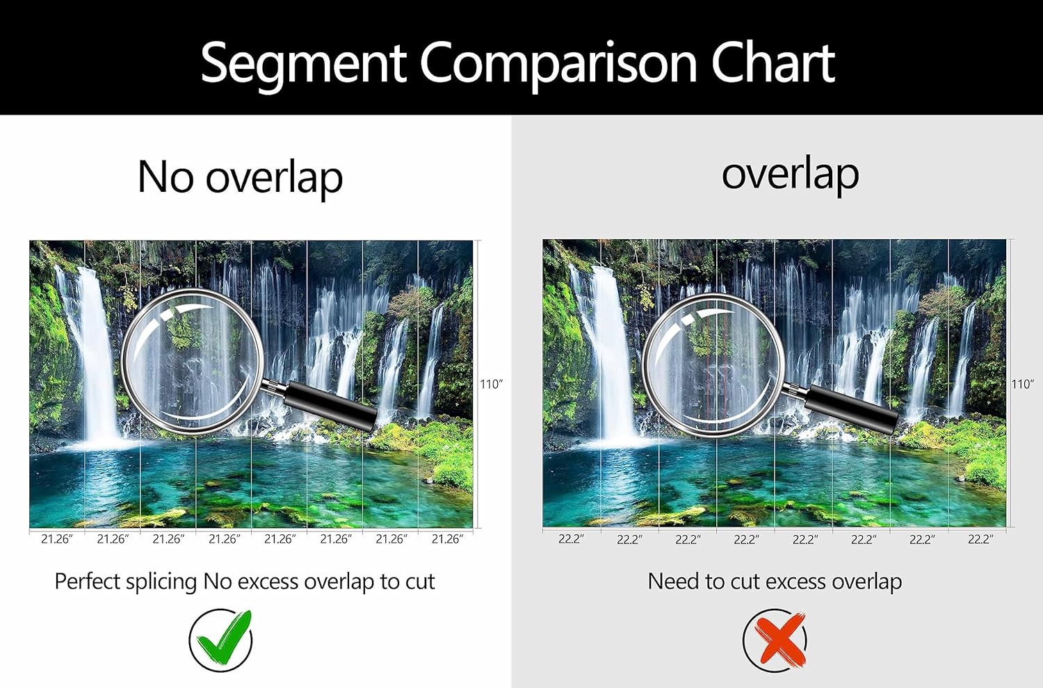 - Mural Size: The total size of this mural wallpaper is 170" x 110" / 432CM x 280CM (W x H), cut into 8 pieces, each measuring 21.26" x 110", for easy installation.
