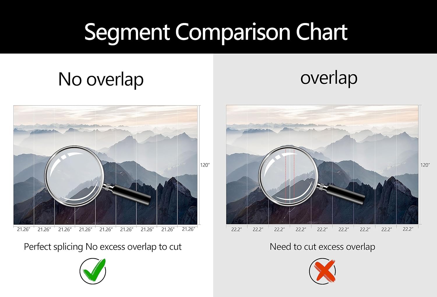 - Mural Size: The total size of this mural wallpaper is 191" x 120" / 486CM x 305CM (W x H), cut into 9 pieces, each measuring 21.26" x 120", for easy installation.