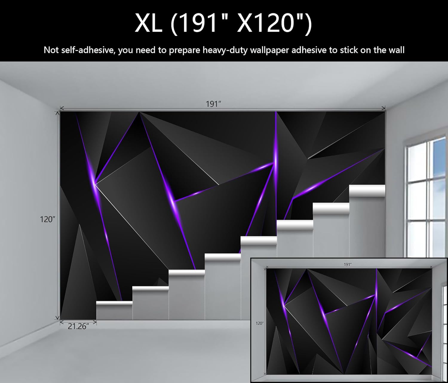 WFBHUA-3d Black Geometric Wallpaper Purple Lines Large Background Wall Mural for Bedroom Living Room (No Peel and Stick)