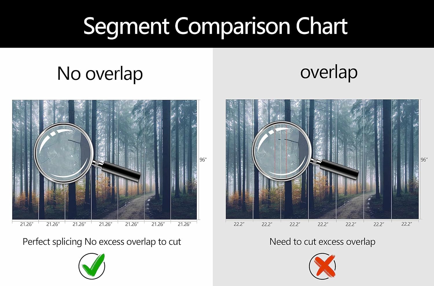 - Mural Size: The total size of this mural wallpaper is 149" x 96" / 378CM x 244CM (W x H), cut into 7 pieces, each measuring 21.26" x 96", for easy installation.