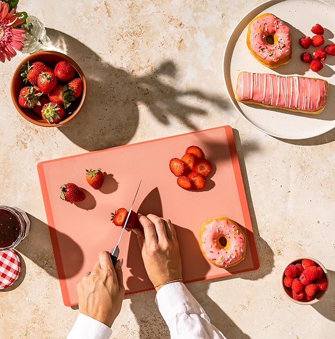 - Versatile & Dishwasher Safe: Thick and durable, this dishwasher safe cutting board withstands temperatures up to 180°F. Simply rinse or toss in the dishwasher – it resists bending and warping for years. Lightweight yet tough, it’s perfect for home kitchens, apartments, dorms, or on-the-go in your RV