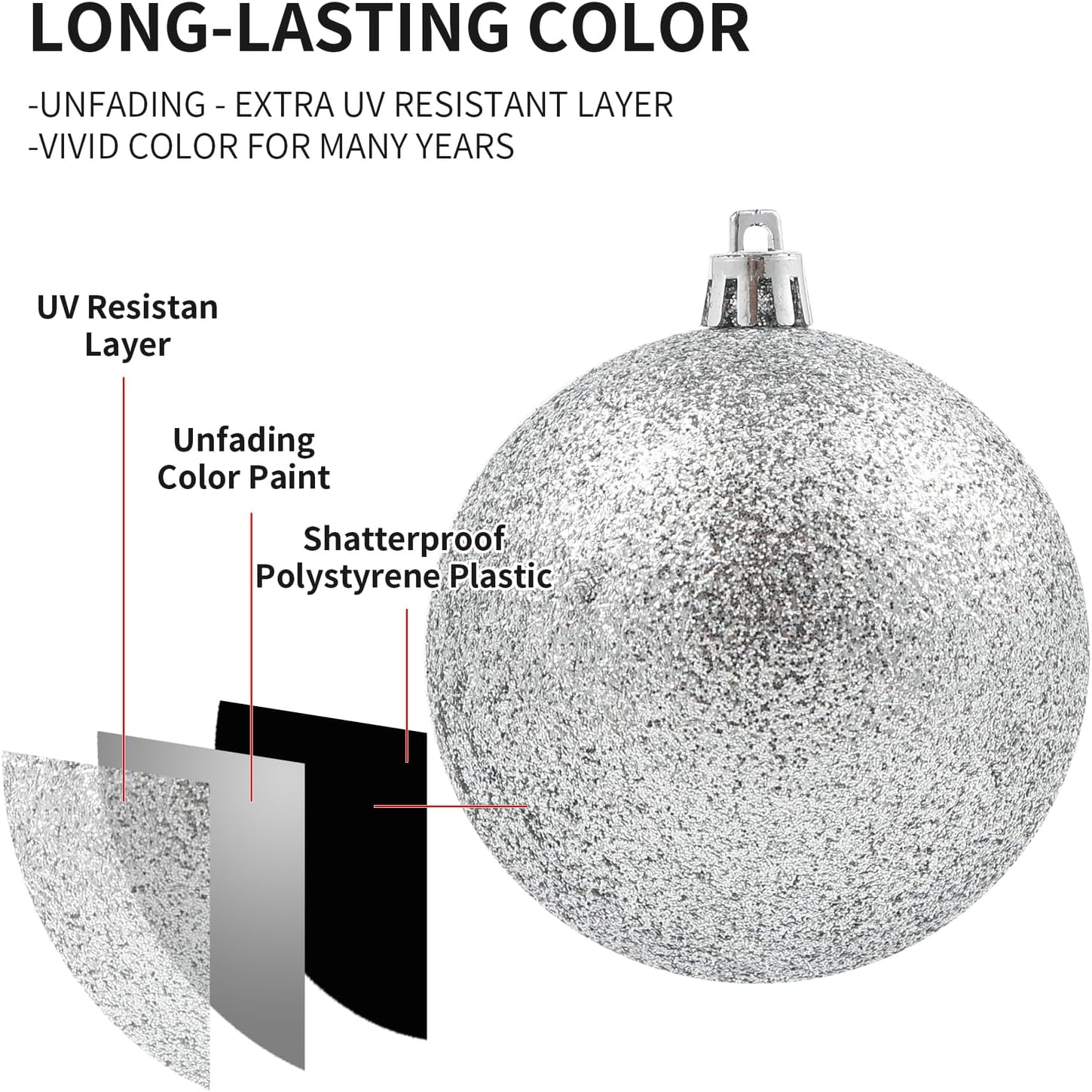 - Premium Quality - Crafted from thick and durable material, all our Christmas balls are made to last. Each ornament includes a high-quality plastic hanger to ensure they stay vibrant and shiny throughout the holiday season. Uv protection, indoor and outdoor use.