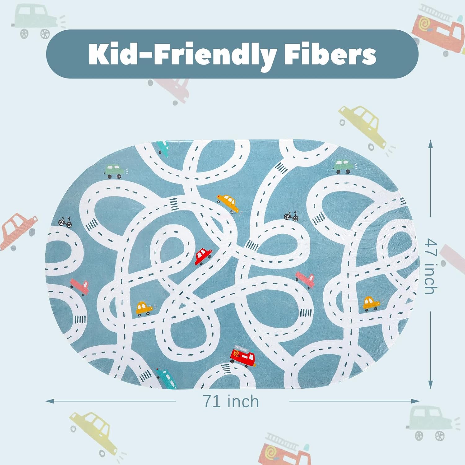 - Funny Car Mat for Kids: Designed with classic road and car patterns,the game rug offers a paly area to children. With creative traffic elements, young children can host many exciting games.
