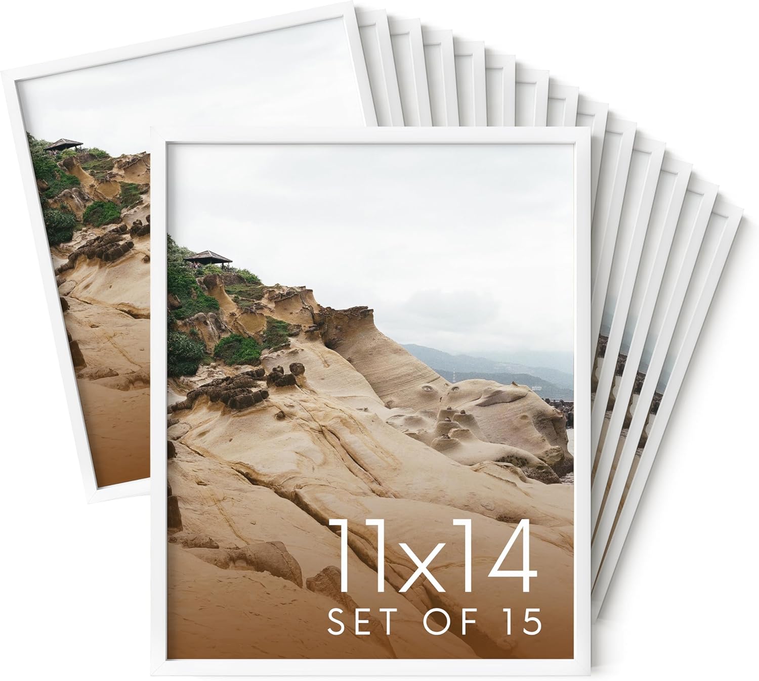 HAUS AND HUES 11x14 White Metal Picture Frames - Features Premium Aluminum, Vertical & Horizontal Hang, Shatterproof Plexiglass - Perfect for Home, Room, Office (11x14 in, White, Set of 15)