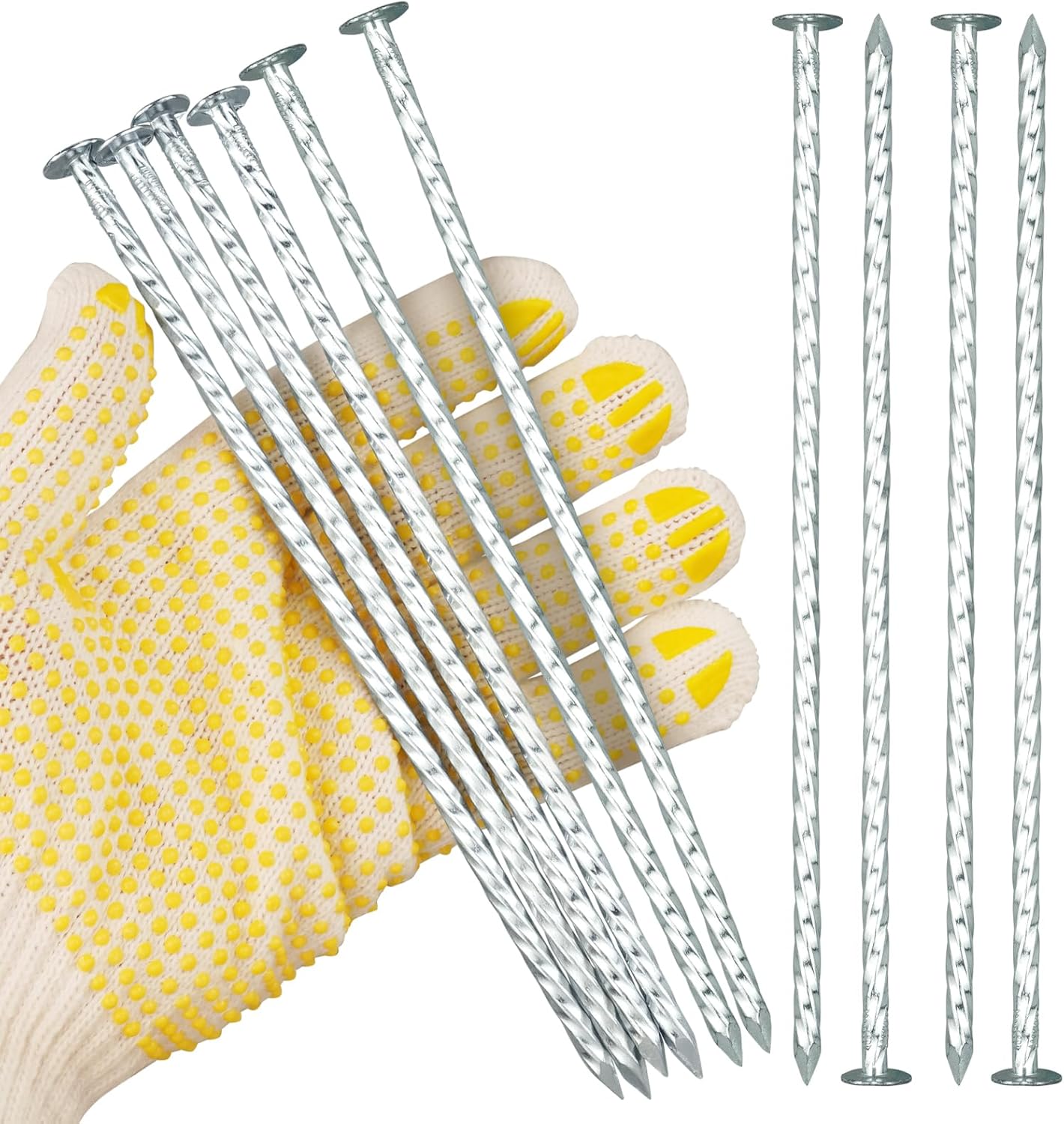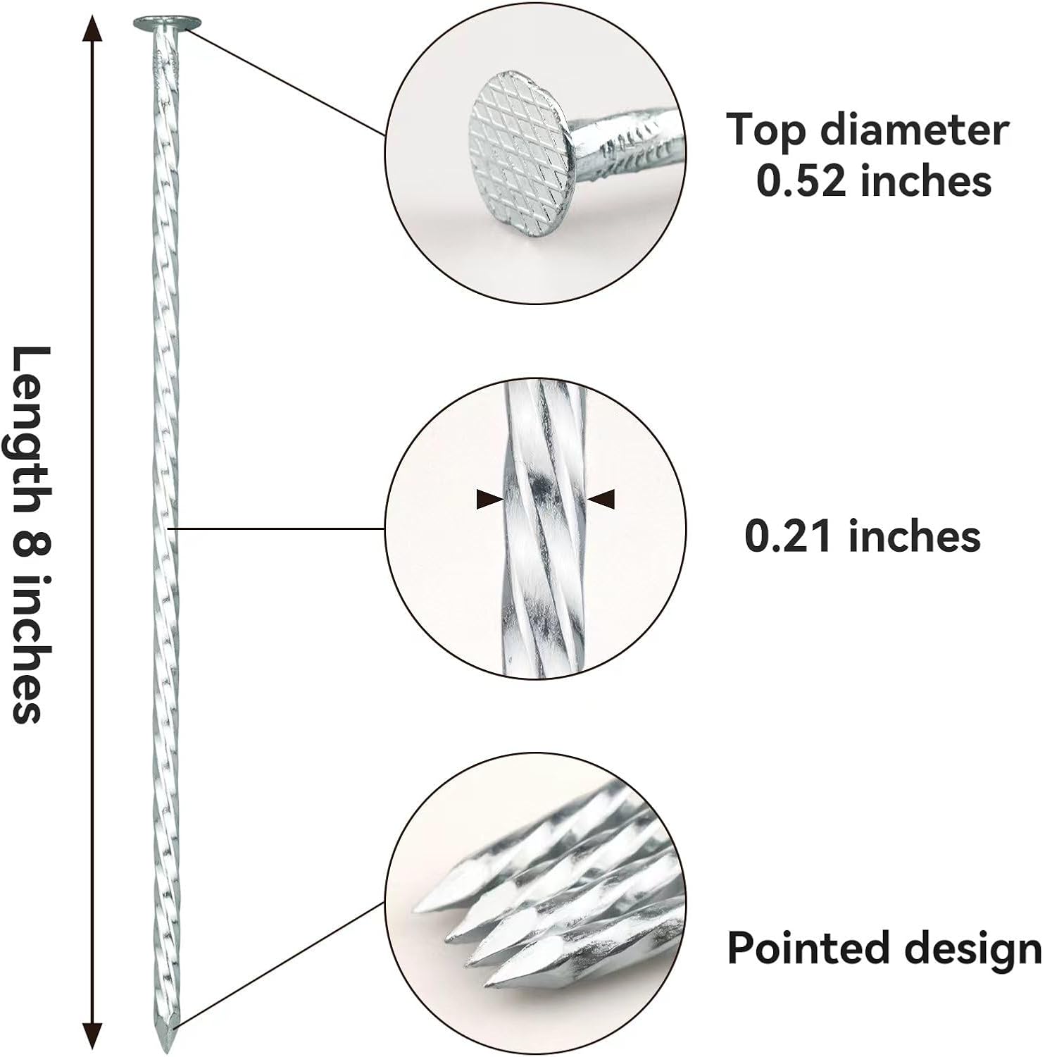 8" Heavy Duty Spiral Landscape Spikes - Solid Galvanized Metal Garden Stakes for Fixing Paver Edging, Weed Barriers, Artificial Turf, Tent and More (50)