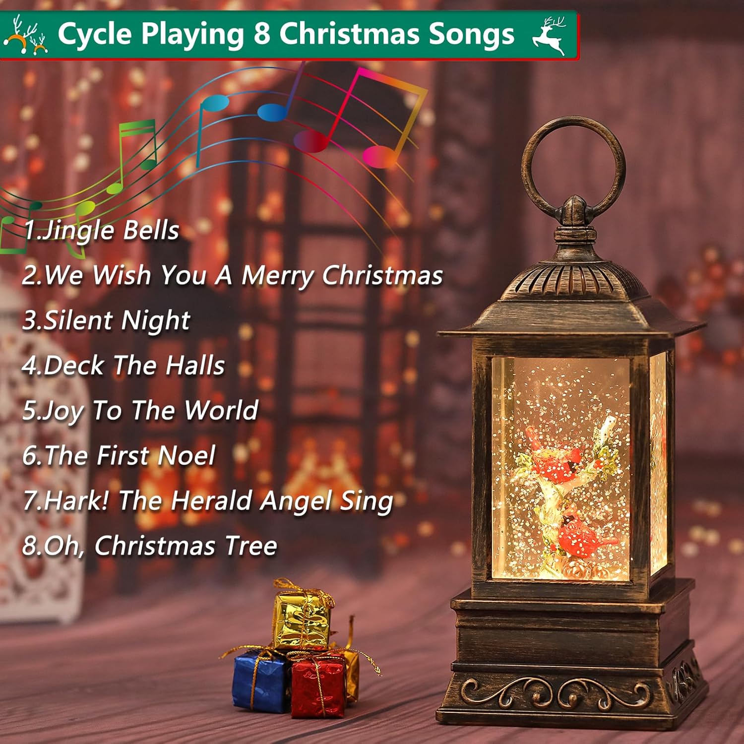 Christmas Snow Globe Cardinal Lantern, Glitter Lighted Christmas Decorations for Home with Music, Light Up Musical Snowglobe Cardinal Décor