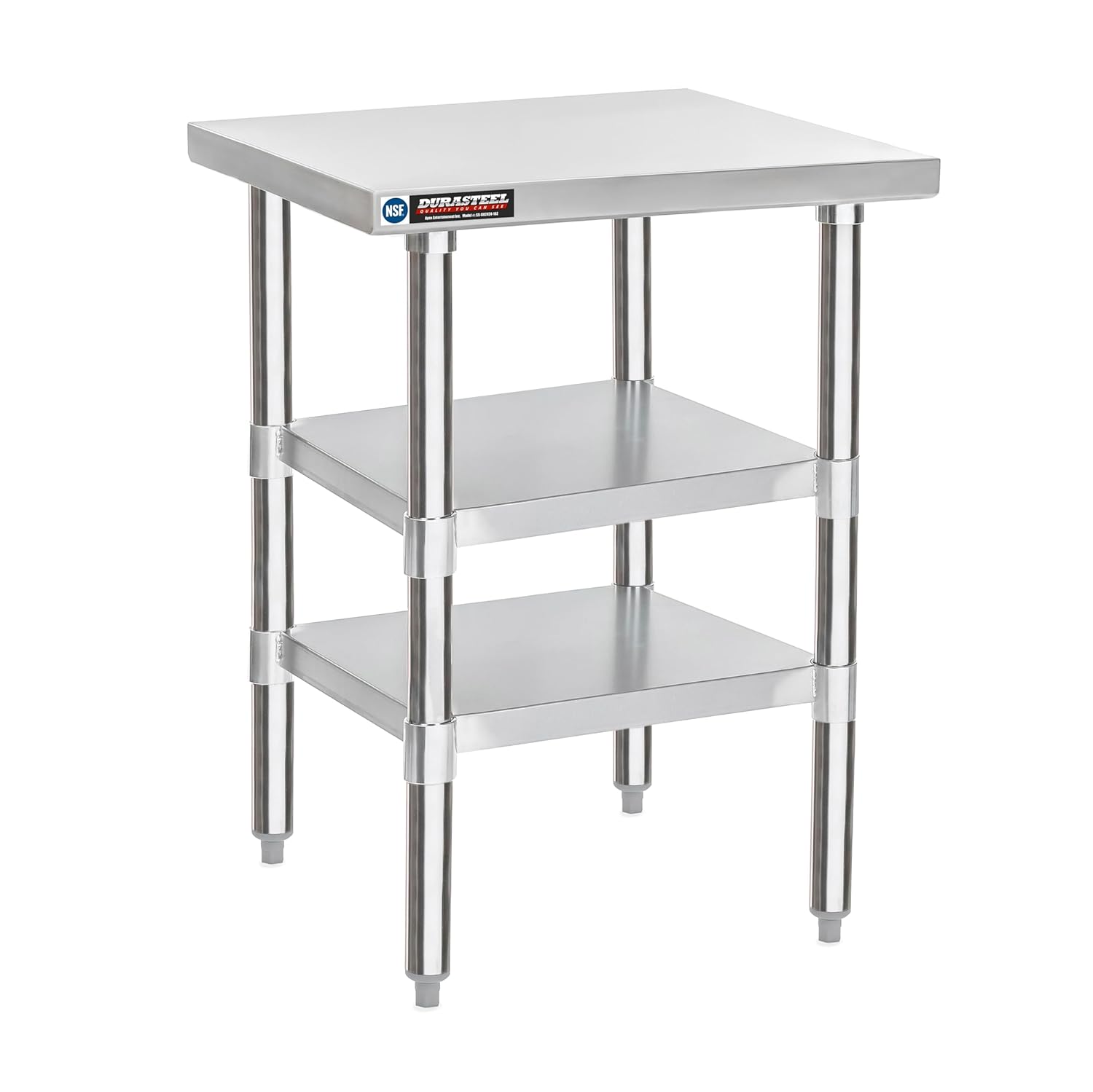 DuraSteel Food Prep Stainless Steel Table - 24 x 24 Inch Commercial Metal Workbench with Adjustable Under Shelf - NSF Certified - for Restaurant, Warehouse, Home, Kitchen, Garage