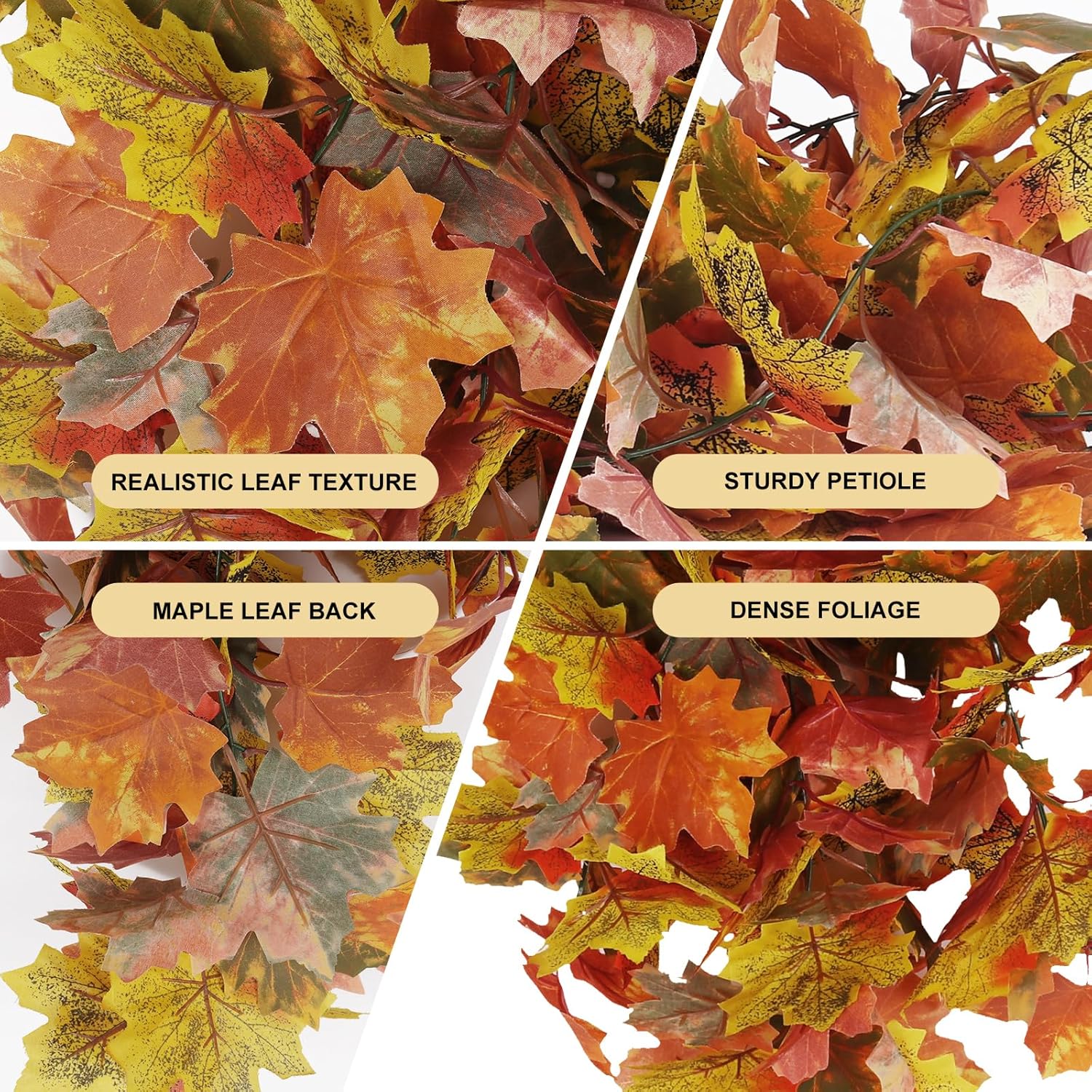 - [Perfect Fall Decor]Hanging maple leaves plants are the perfect decoration for autumn and Thanksgiving day,the fall maple leaf garlands can create a festival atmosphere for you home.Artificial hanging maple leaves plants can be applied to indoor and outdoor autumn decorations.