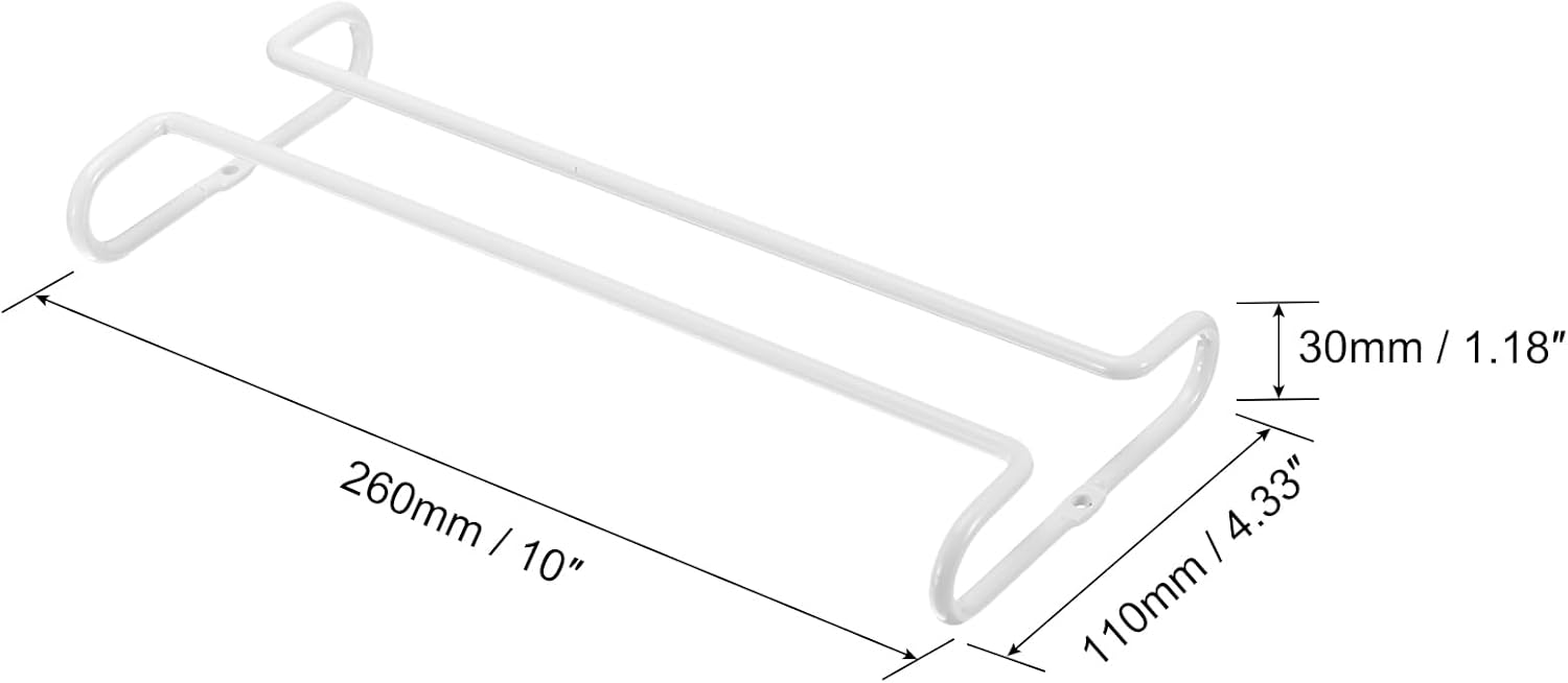 - [Style and Size] This wine glass rack is a single-row metal wine holder; Size: 260x110x30mm/10"x4.33"x1.18"(LxWxH); Material: Stainless Steel; Opening Diameter: 5mm; Color: White; Products Include: 4pcs x Under Cabinet Wine Glass Holder